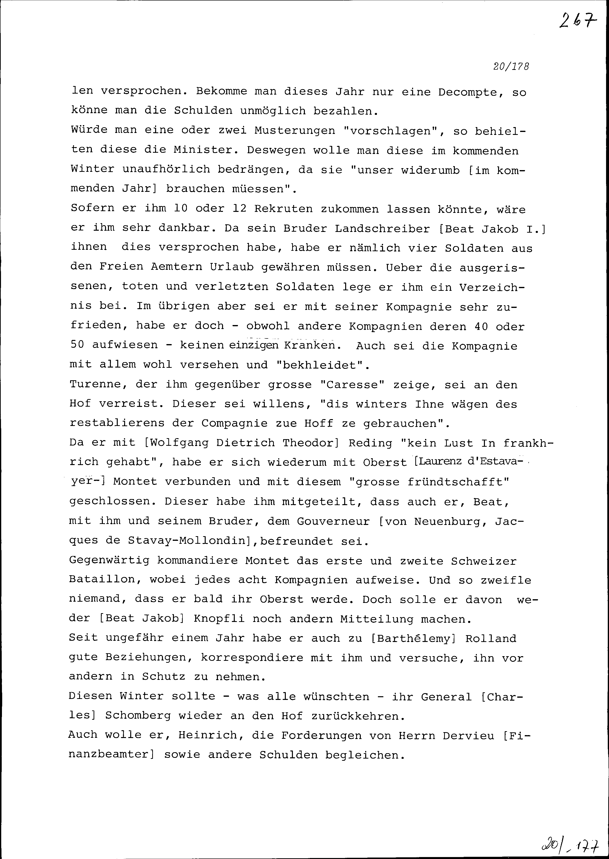 Schreiben von Heinrich II. Zurlauben an Beat II. Zurlauben