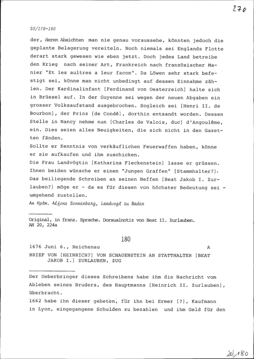 Schreiben von Heinrich von Schauenstein an Beat Jakob I. Zurlauben, Statthalter, Zug