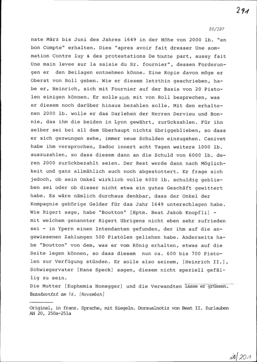 Schreiben von Heinrich II. Zurlauben an Beat II. Zurlauben, Ammann, Zug