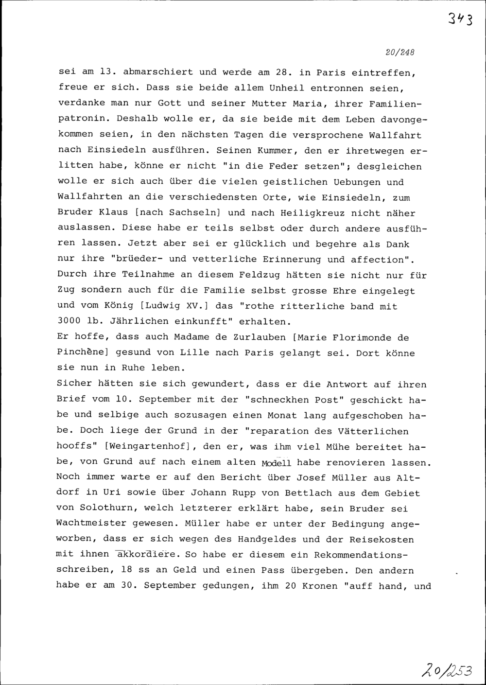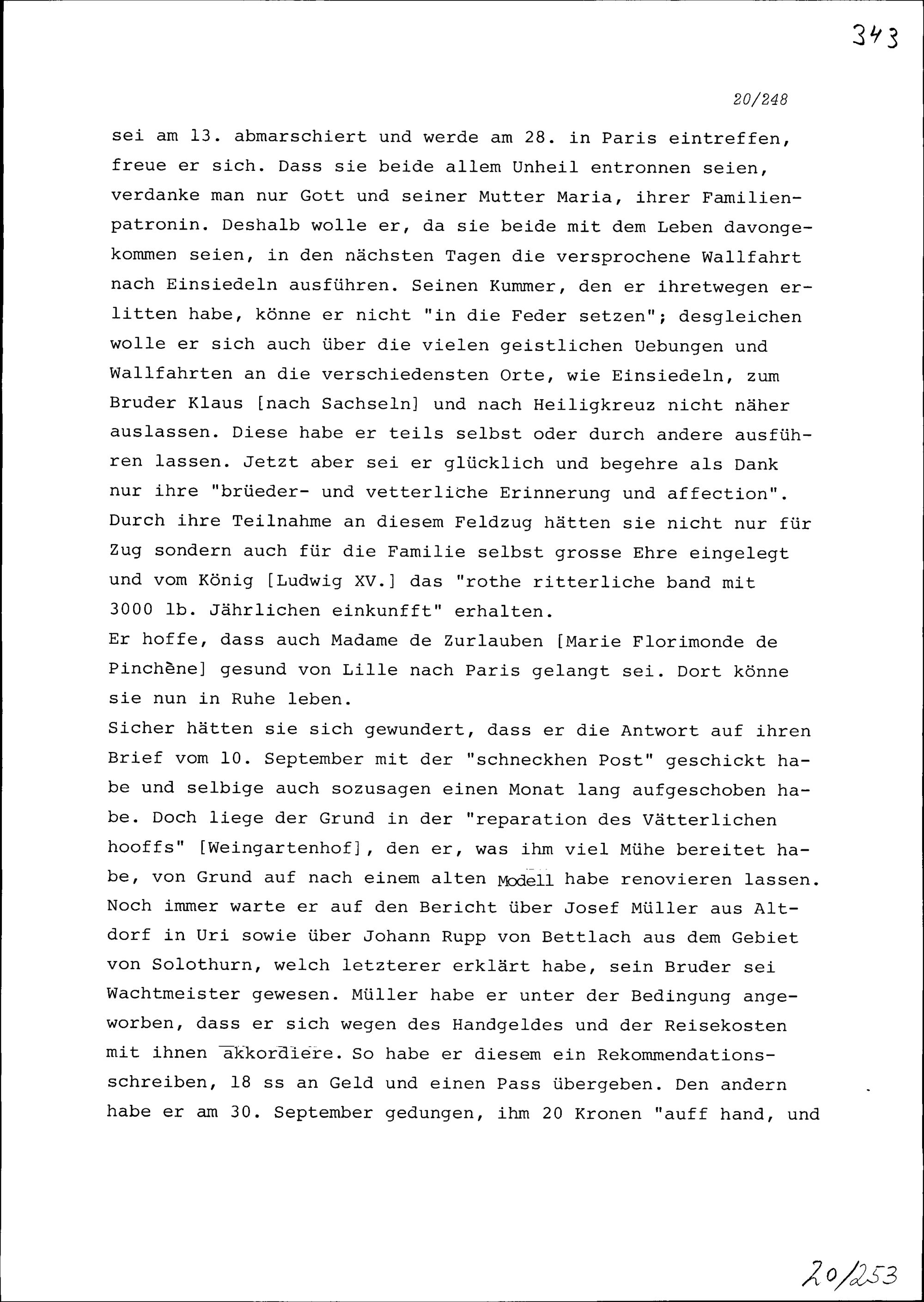 Schreiben von Beat Jakob Anton Zurlauben an Beat Franz Plazidus Zurlauben, Kommandant des Sankt Ludwigsordens und Marschall, Paris