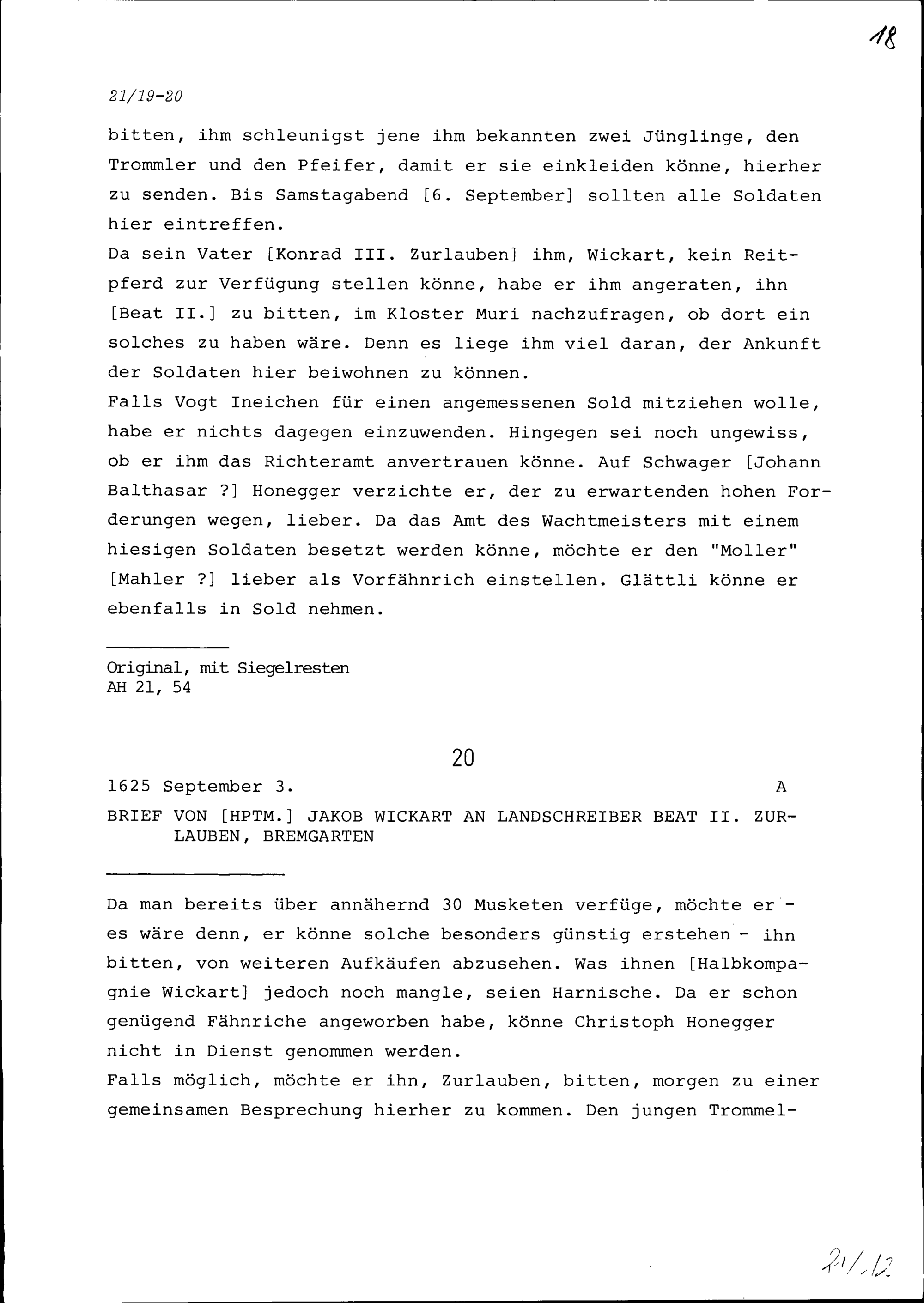 Schreiben von Jakob Wickart, Hauptmann, an Beat II. Zurlauben, Landschreiber, Br...