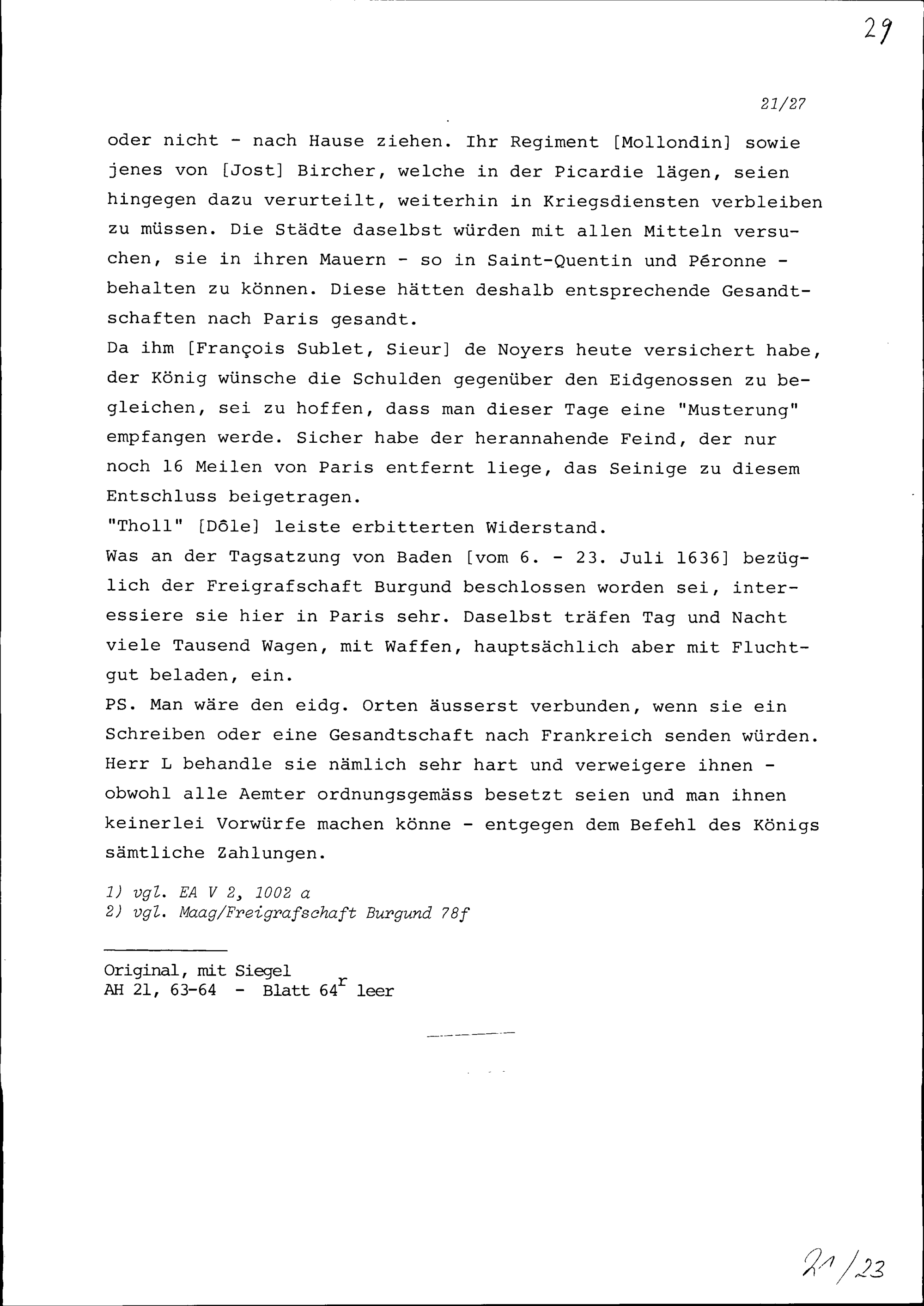 Schreiben von Beat Jakob Knopfli, Hauptmann, an Beat II. Zurlauben, Hauptmann, Z...