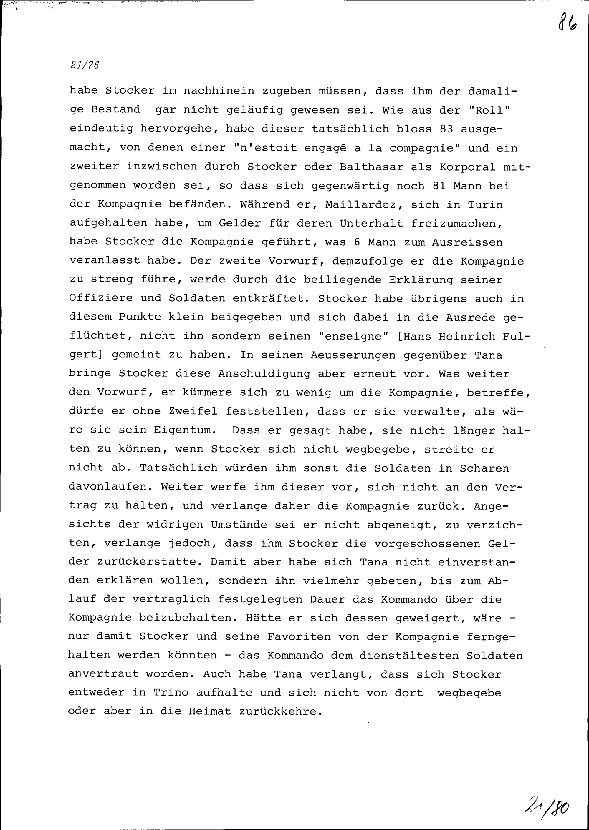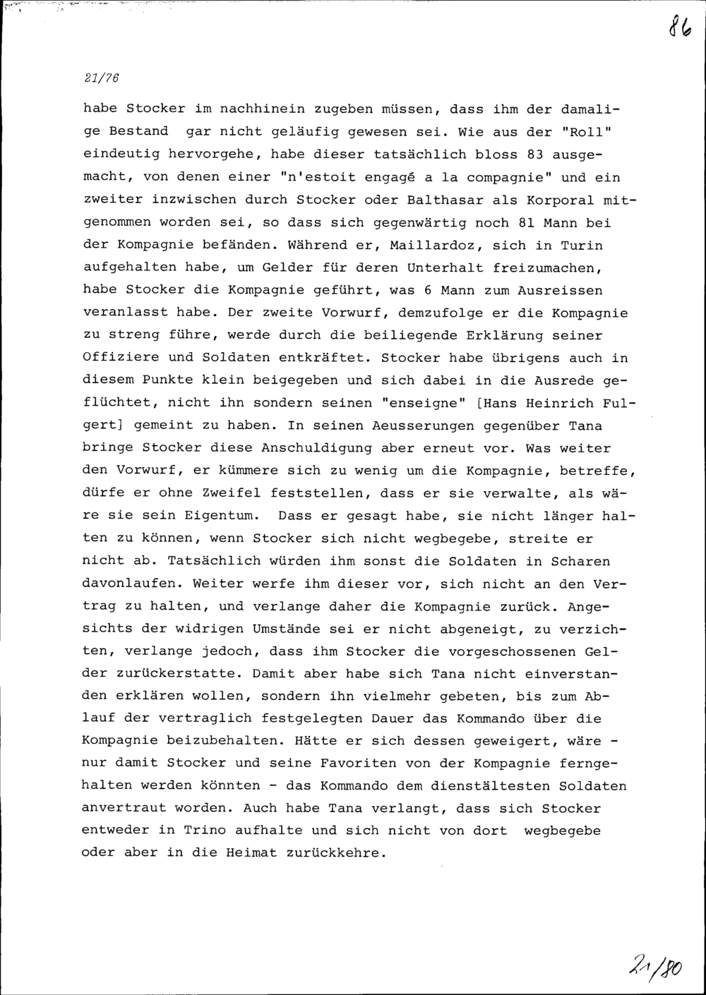 Schreiben von NN Maillardoz, Hauptmann, an Louis du Pré, Hauptmann
