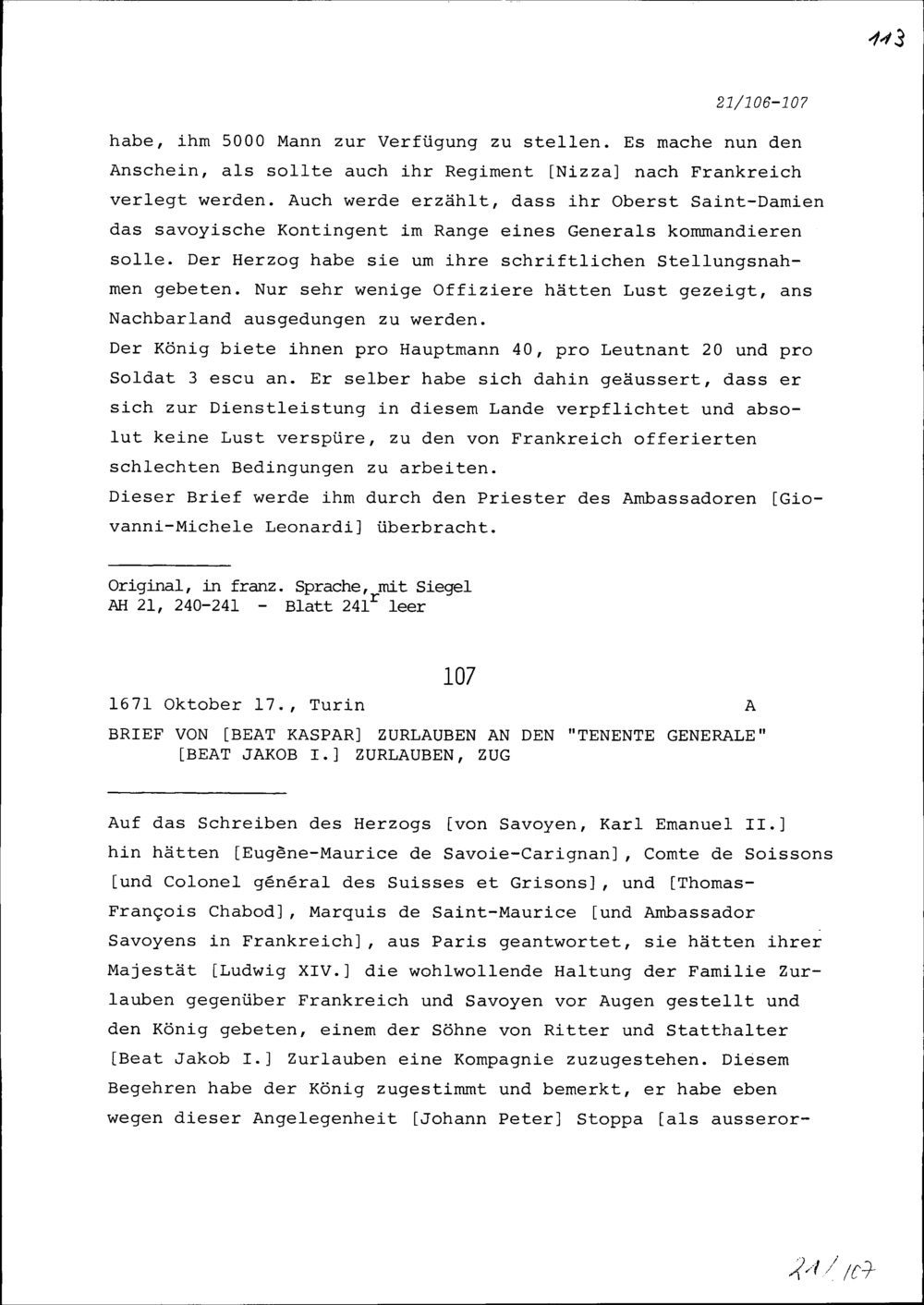 Schreiben von Beat Kaspar Zurlauben an Beat Jakob I. Zurlauben, Statthalter, Zug
