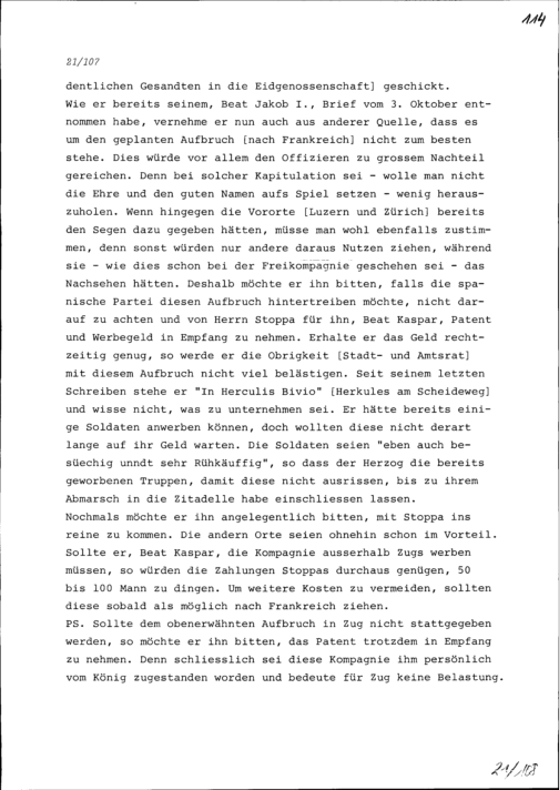 Schreiben von Beat Kaspar Zurlauben an Beat Jakob I. Zurlauben, Statthalter, Zug
