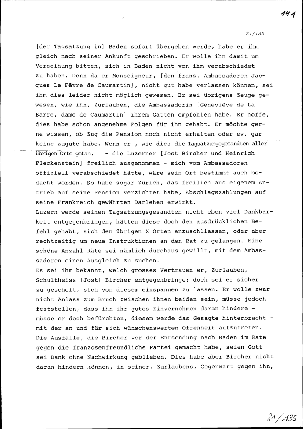 Schreiben von Alfons von Sonnenberg an Beat II. Zurlauben, Ammann, Zug