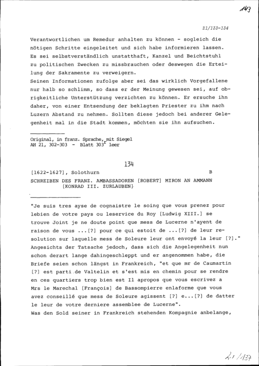 Schreiben von Robert Miron, Ambassador von Frankreich, an Konrad III. Zurlauben,...