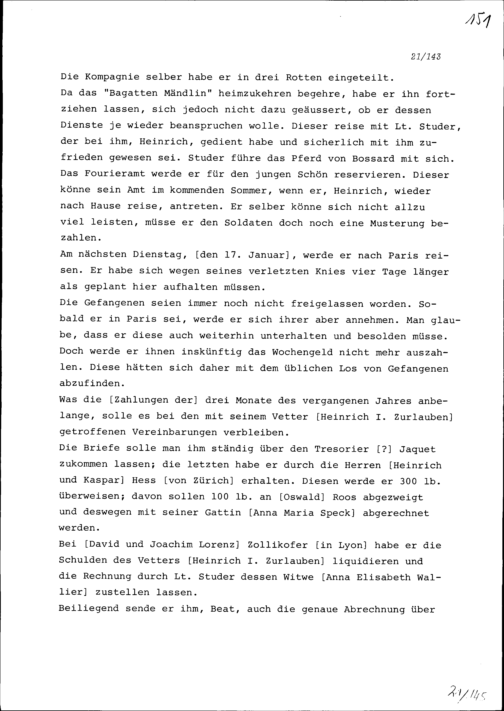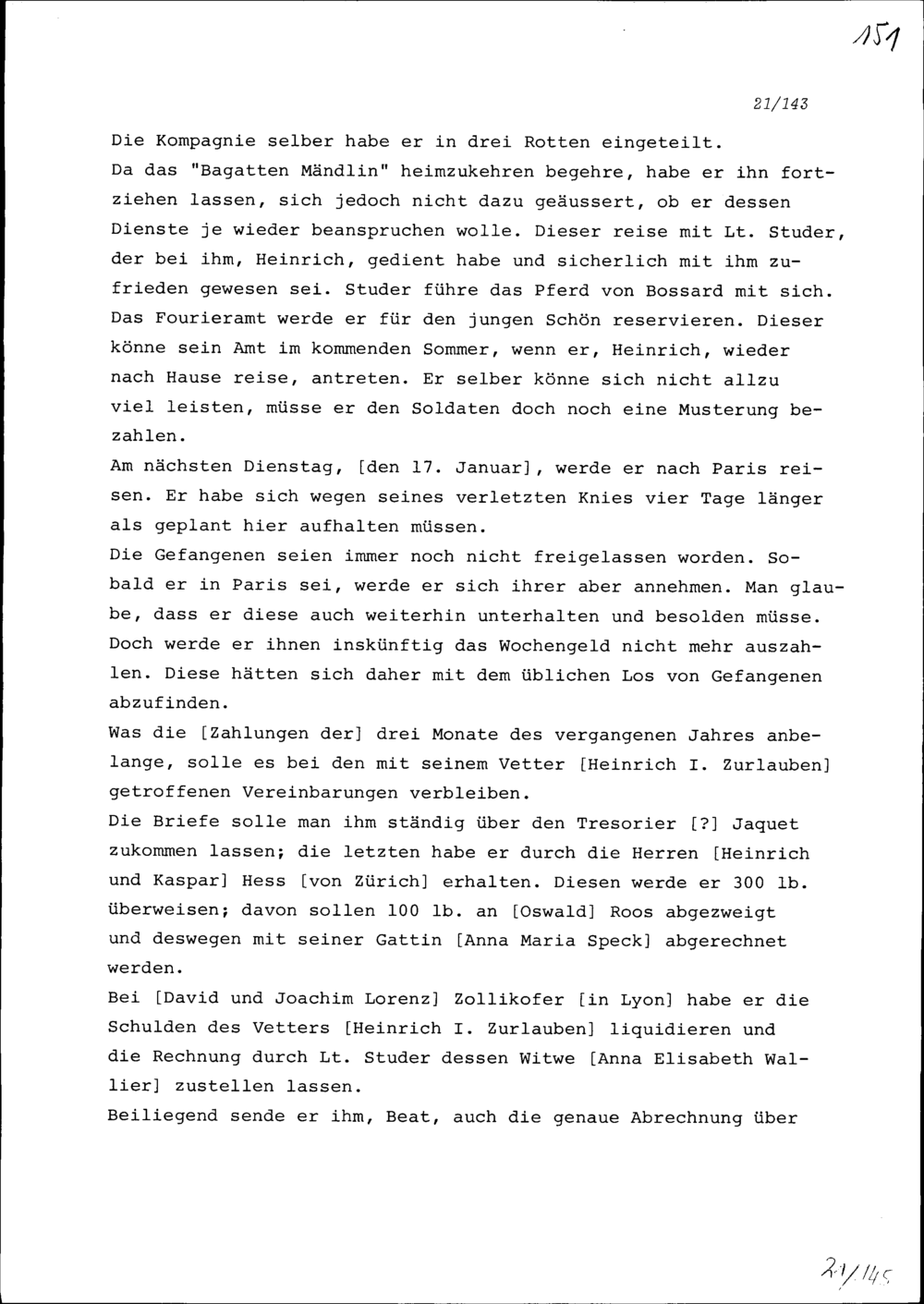 Schreiben von Heinrich II. Zurlauben an Beat II. Zurlauben, Zug