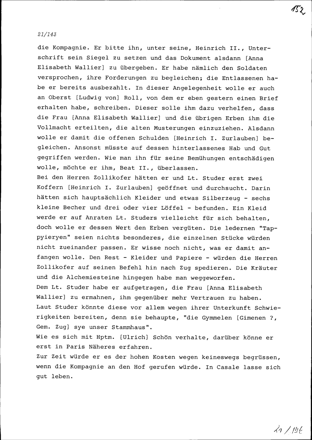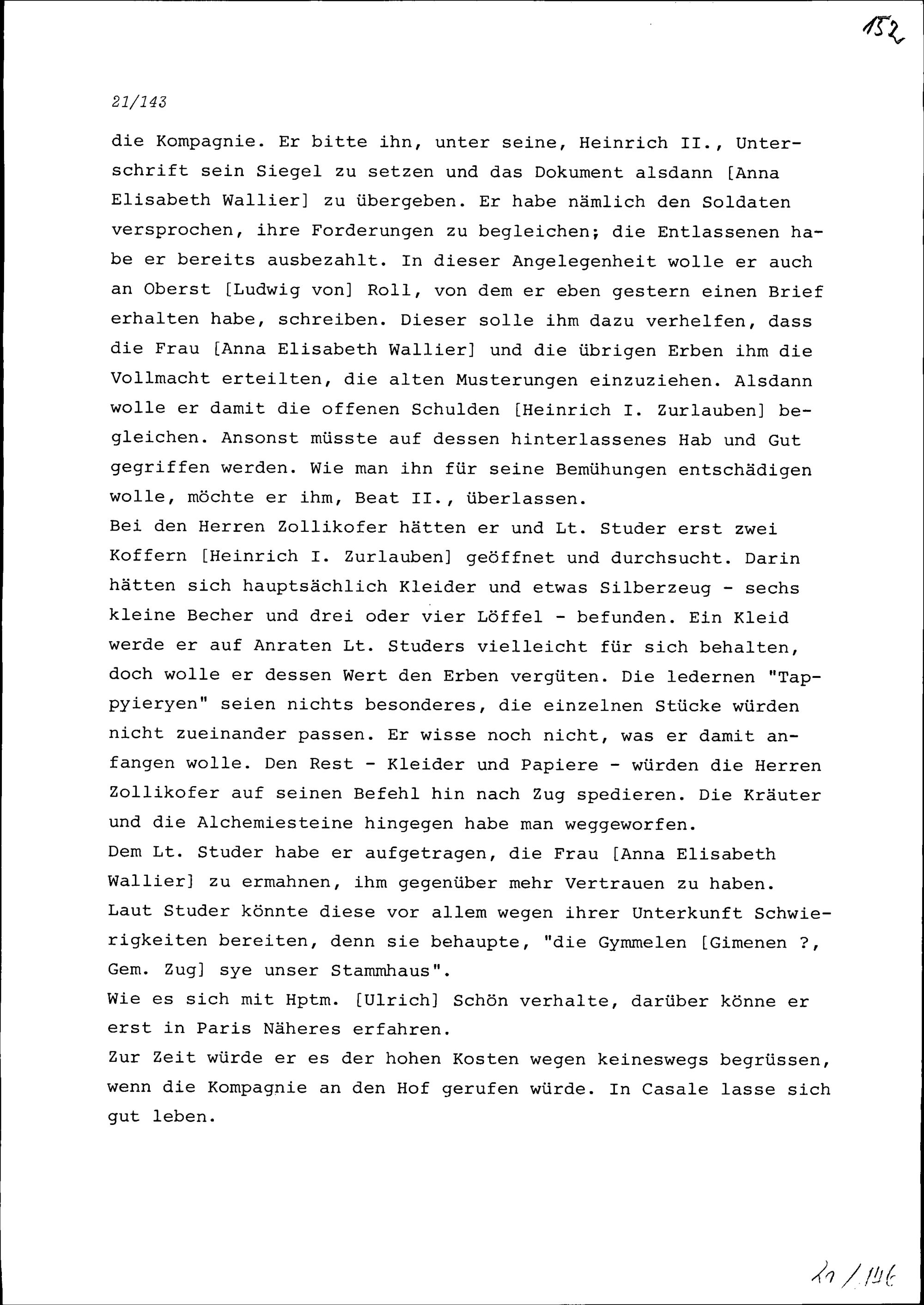 Schreiben von Heinrich II. Zurlauben an Beat II. Zurlauben, Zug