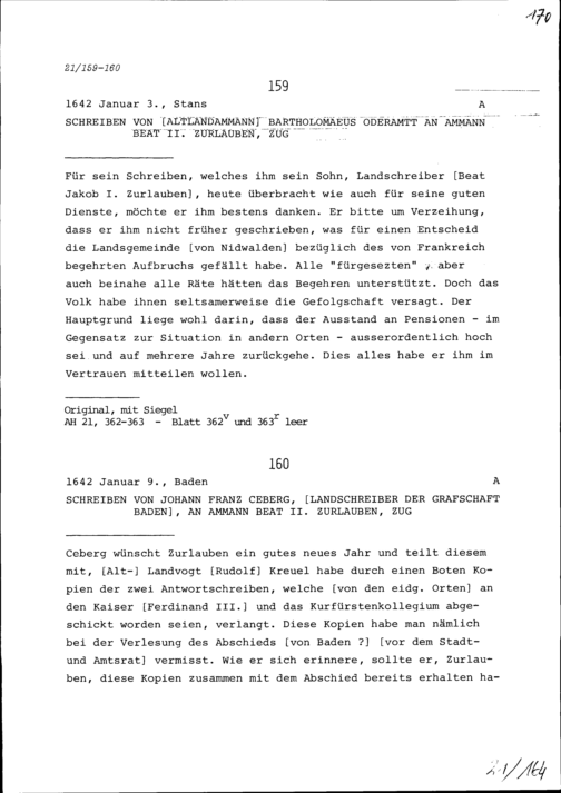 Schreiben von Bartholomäus Odermatt, Altlandammann, an Beat II. Zurlauben, Ammann,...