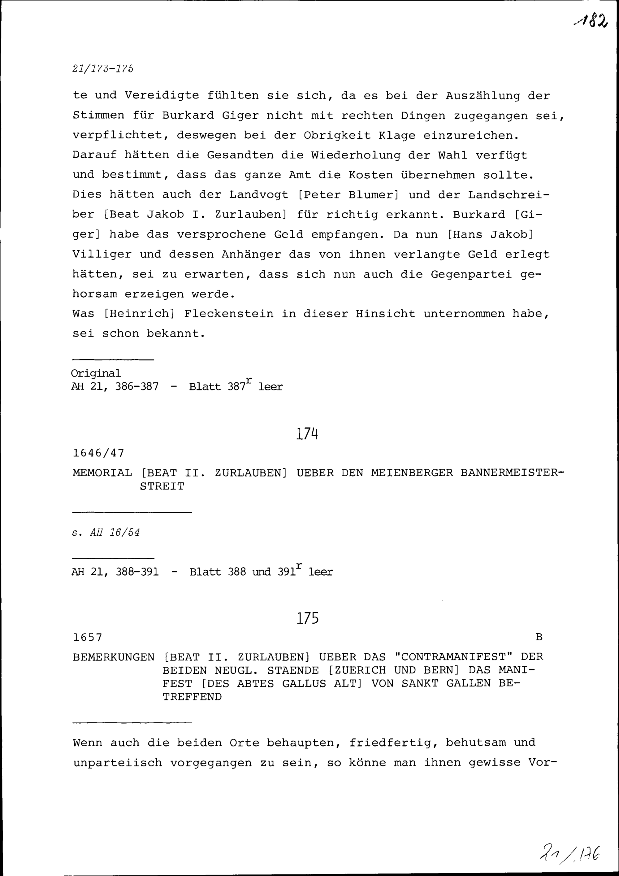 Bericht von Beat II. Zurlauben über den Meienberger Bannermeisterstreit