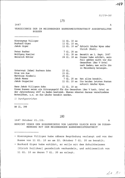Liste der im Meienberger Bannermeisterstreit ausgefällten Bussen