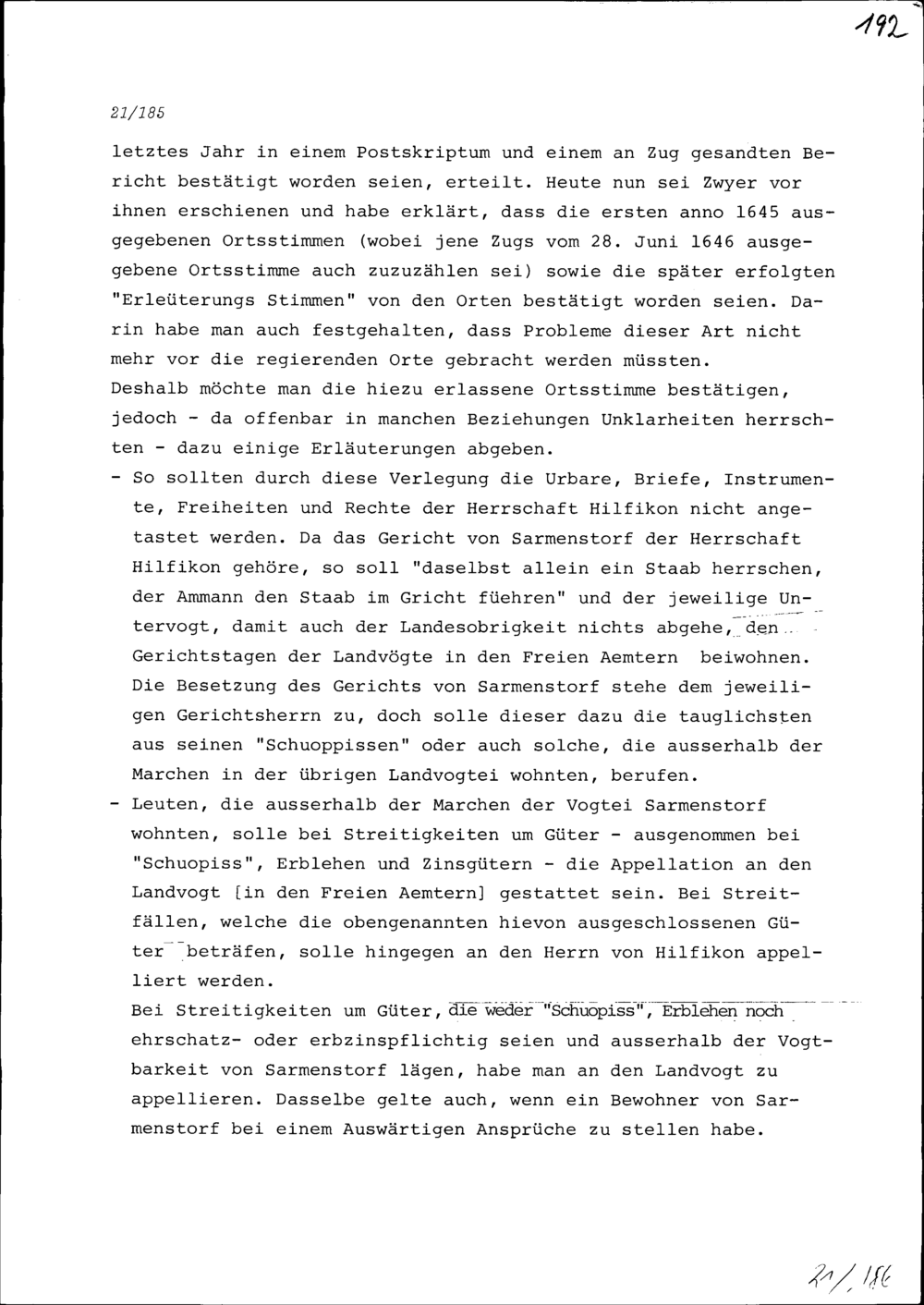 Bestätigung der Ortsstimme von Stadt und Amt Zug bezüglich des Gerichts von Sarmenstorf mit dazugehörigen Erläuterungen des Stadt- und Amtrats