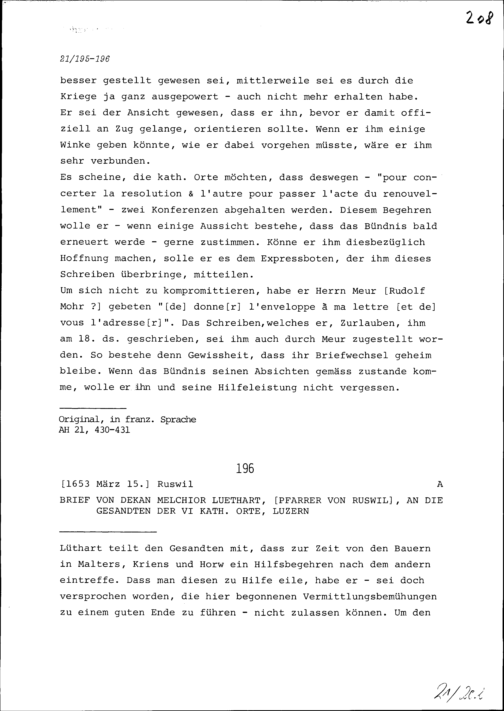 Schreiben von Melchior Lüthart, Pfarrer von Ruswil und Dekan, an die Gesandten der...