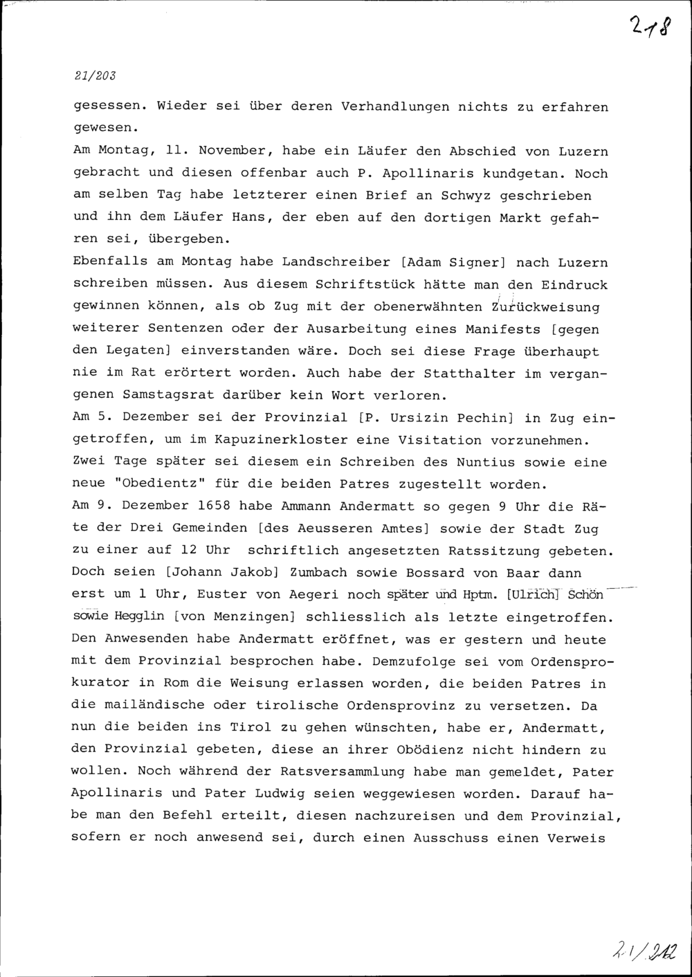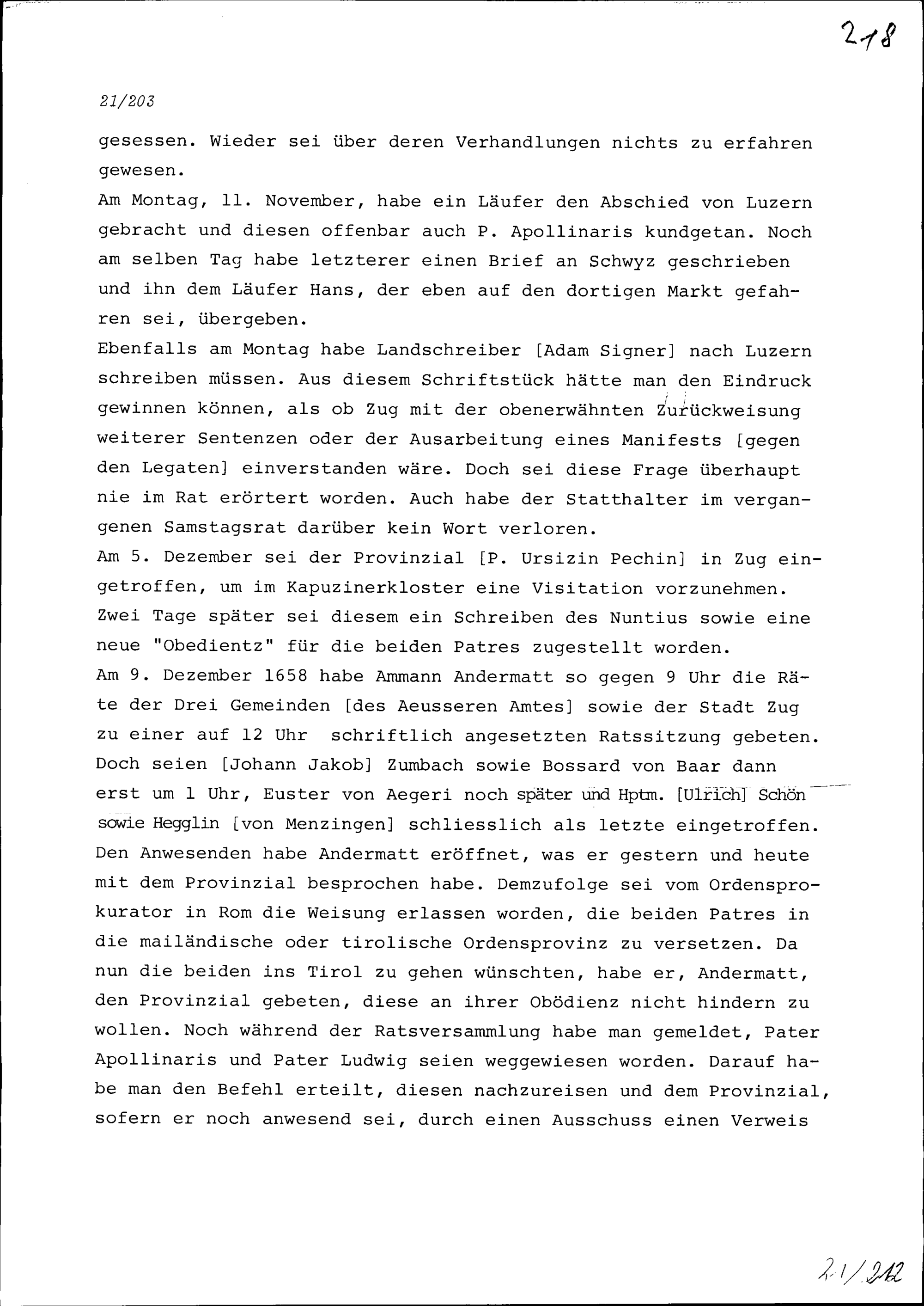 Notiz von Beat II. Zurlauben über die Streitigkeiten um Apollinaris Jütz, Kapuzinerpater, und um Ludwig von Wil Kapuzinerpater