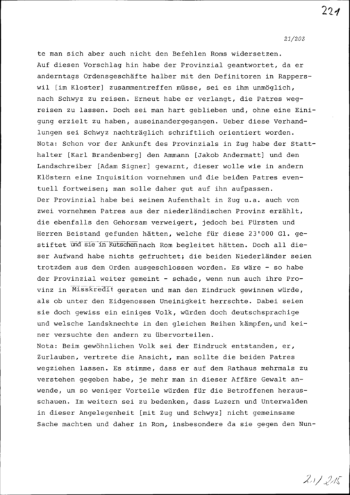 Notiz von Beat II. Zurlauben über die Streitigkeiten um Apollinaris Jütz, Kapuzinerpater, und um Ludwig von Wil Kapuzinerpater