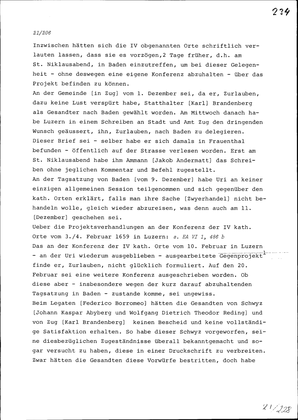 Notiz von Beat II. Zurlauben über die Projekte, zwischen den Neugläubigen und Katholischen...