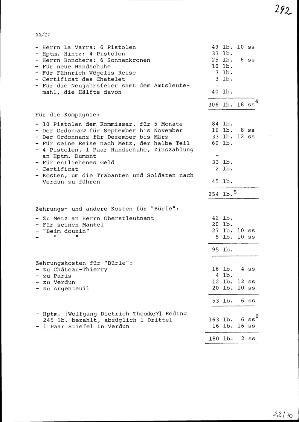 Abrechnung von Heinrich I. Zurlauben über die Kompanie Zurlauben vom Herbst 1631...