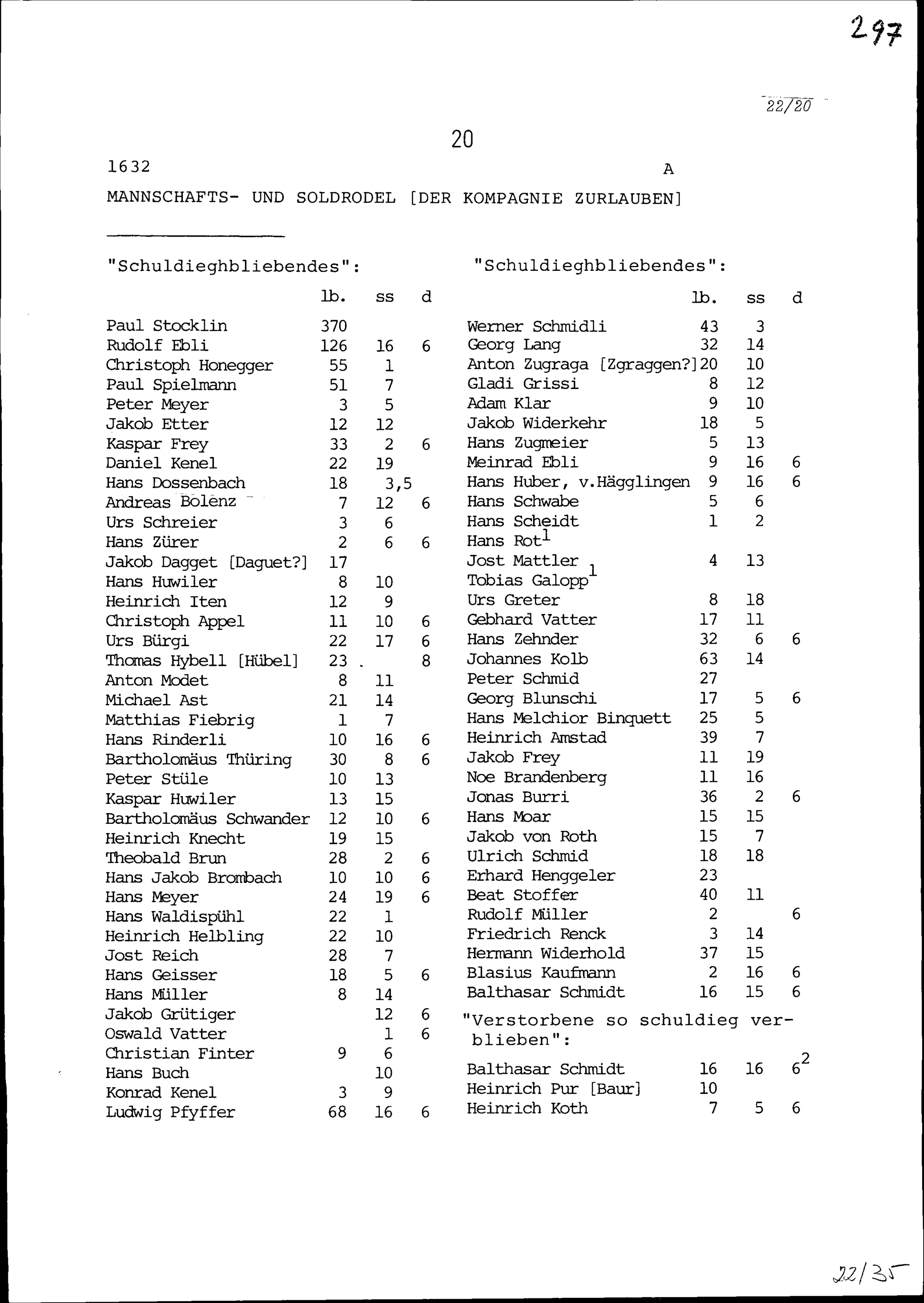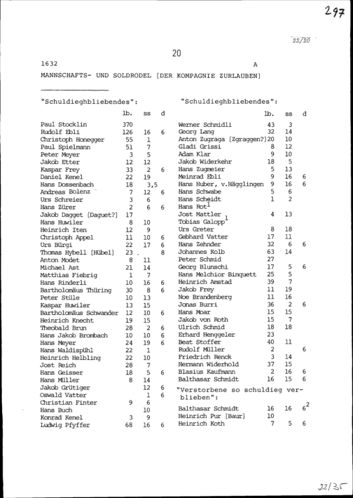 Mannschafts- und Soldrodel der Kompanie Zurlauben
