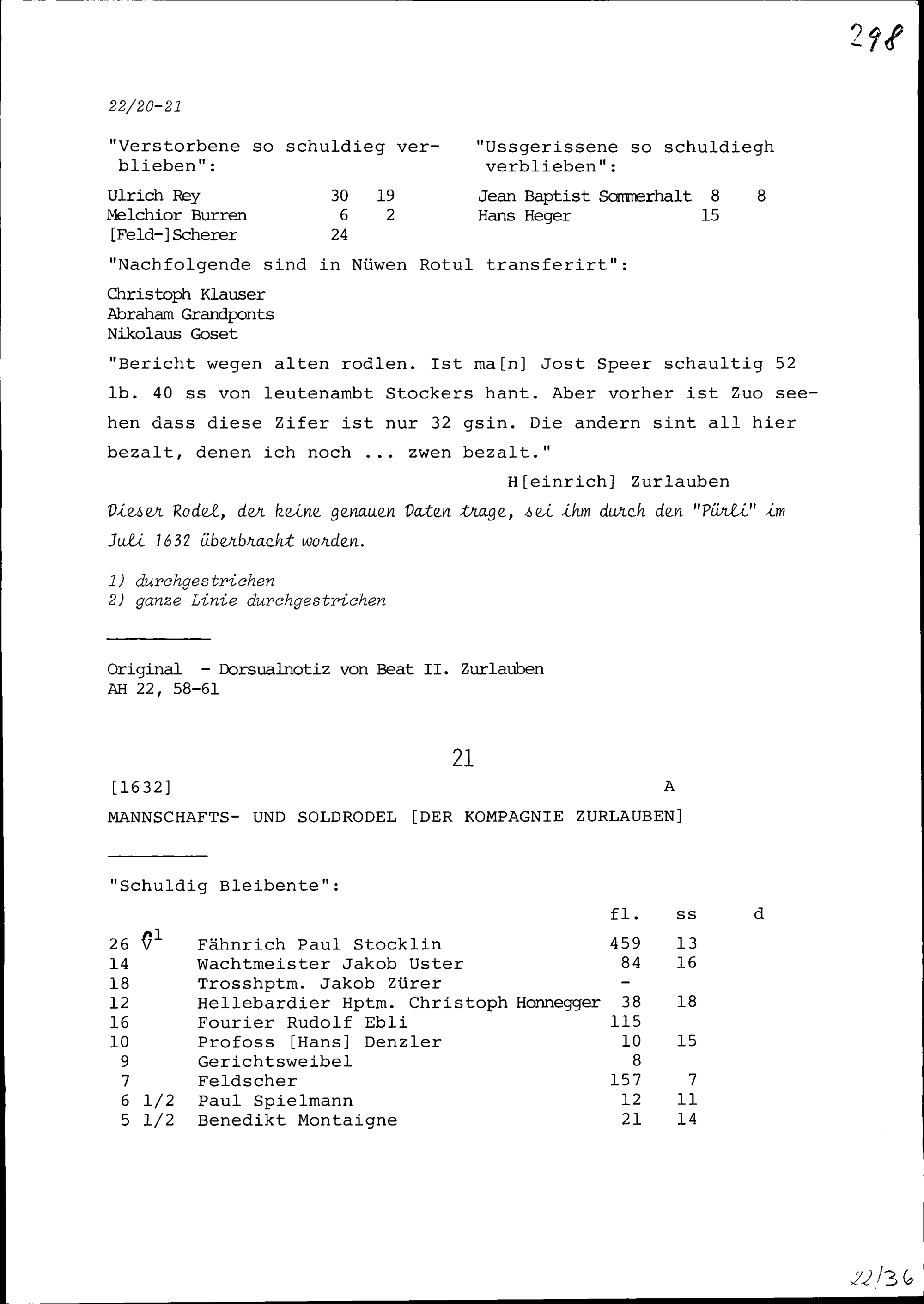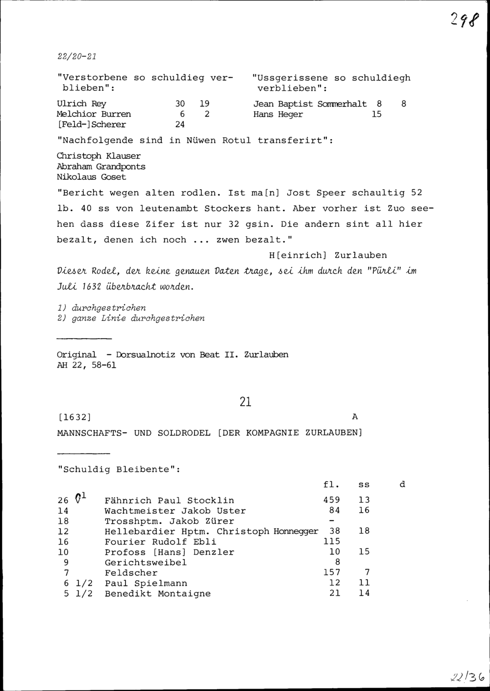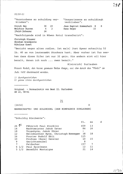 Mannschafts- und Soldrodel der Kompanie Zurlauben