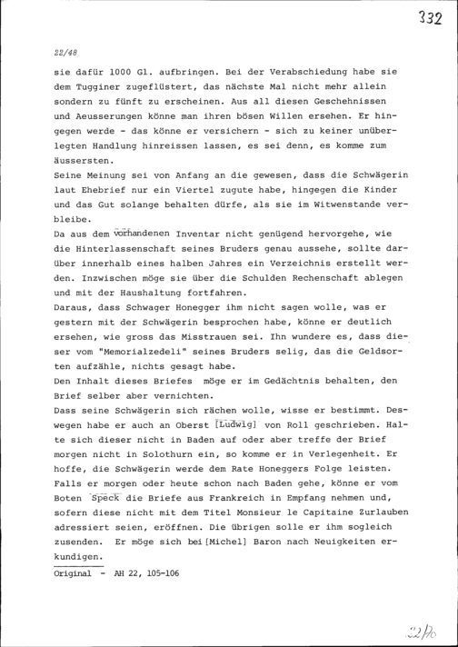 Schreiben von Beat II. Zurlauben an Beat Jakob I. Zurlauben