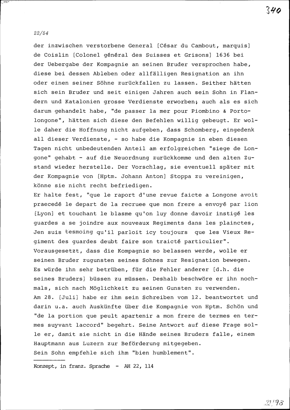 Schreiben von Beat II. Zurlauben an Barthélémy Rolland