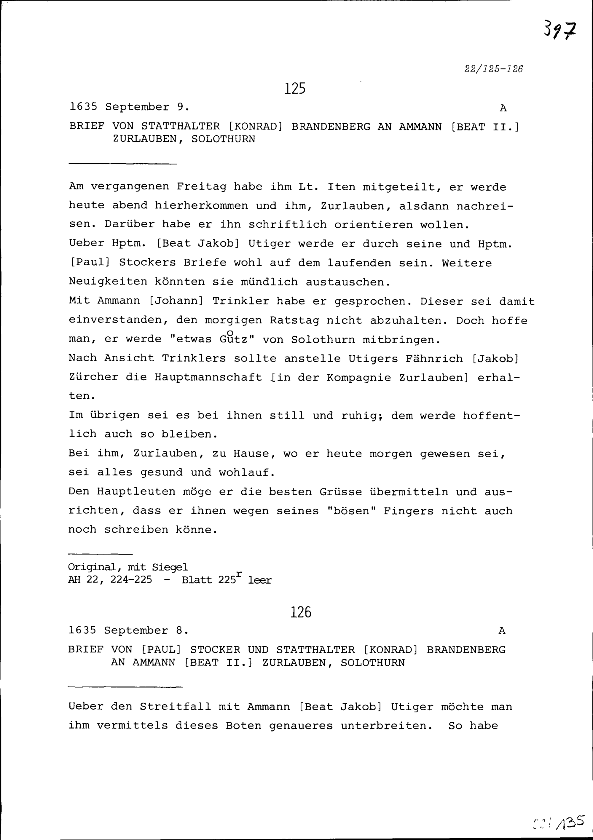 Schreiben von Konrad Brandenberg, Statthalter, an Beat II. Zurlauben, Ammann, Solothurn