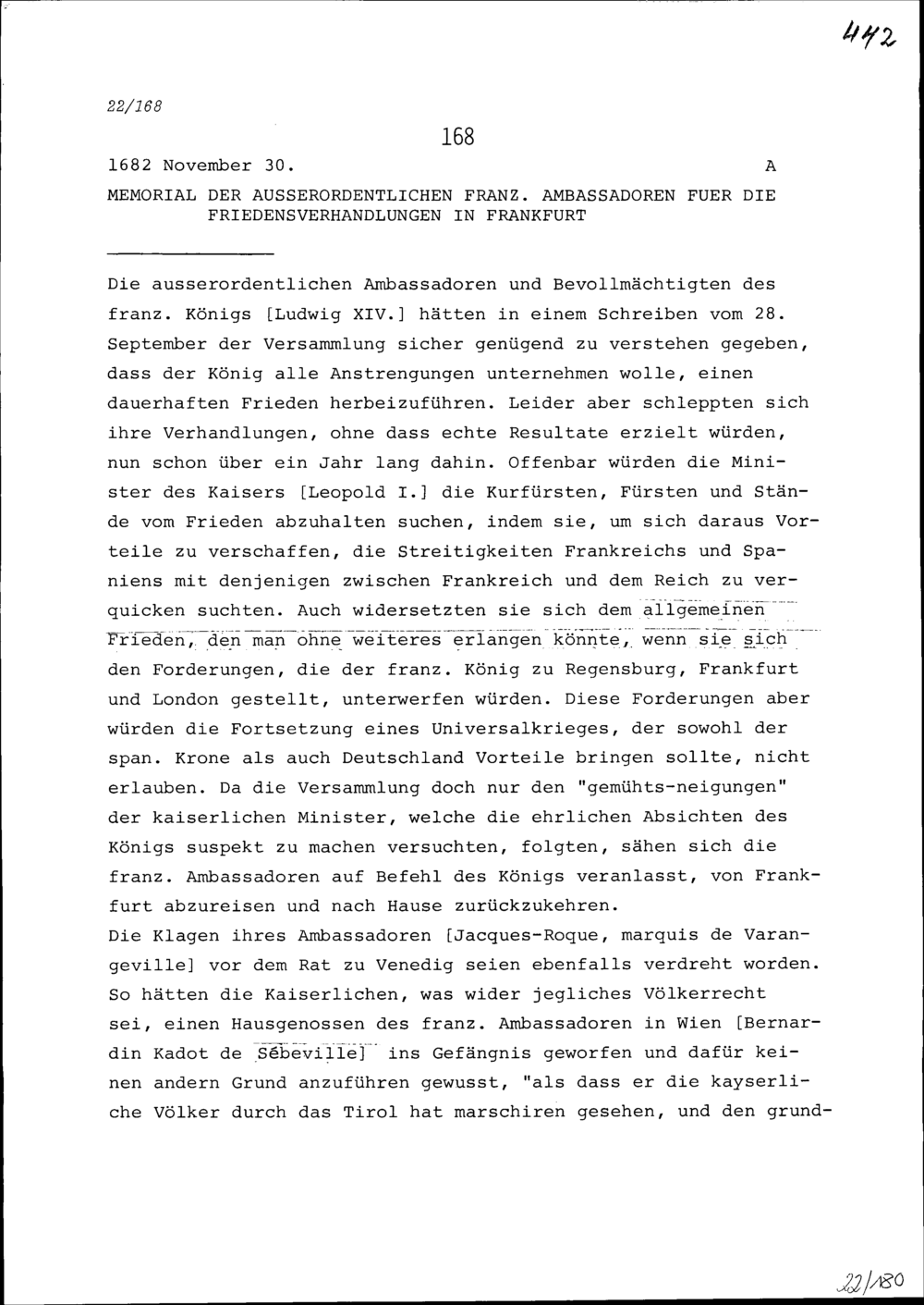 Bericht der ausserordentlichen Ambassadoren von Frankreich für die Friedensverhandlungen in Frankfurt
