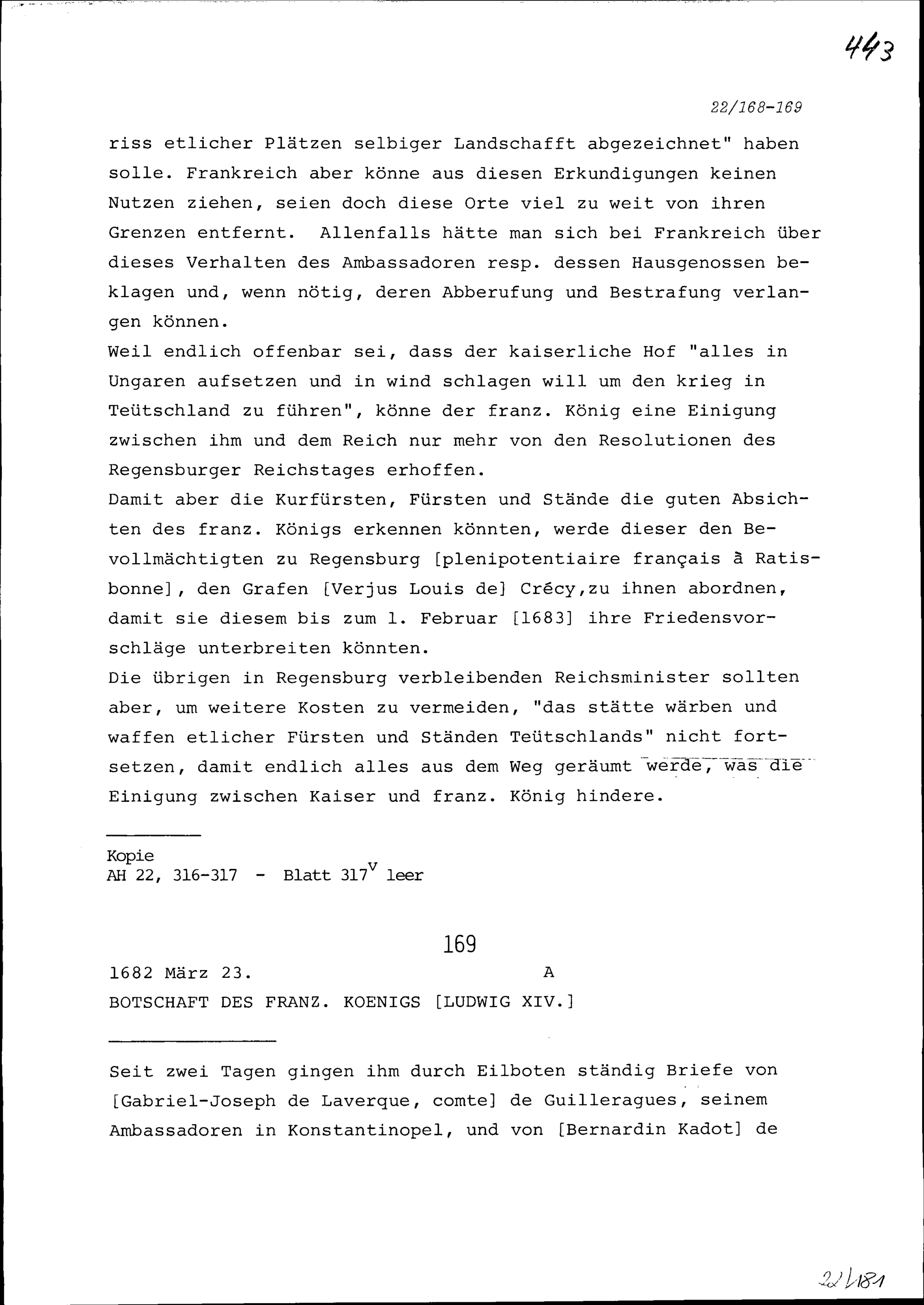 Botschaft von Ludwig XIV., König von Frankreich,