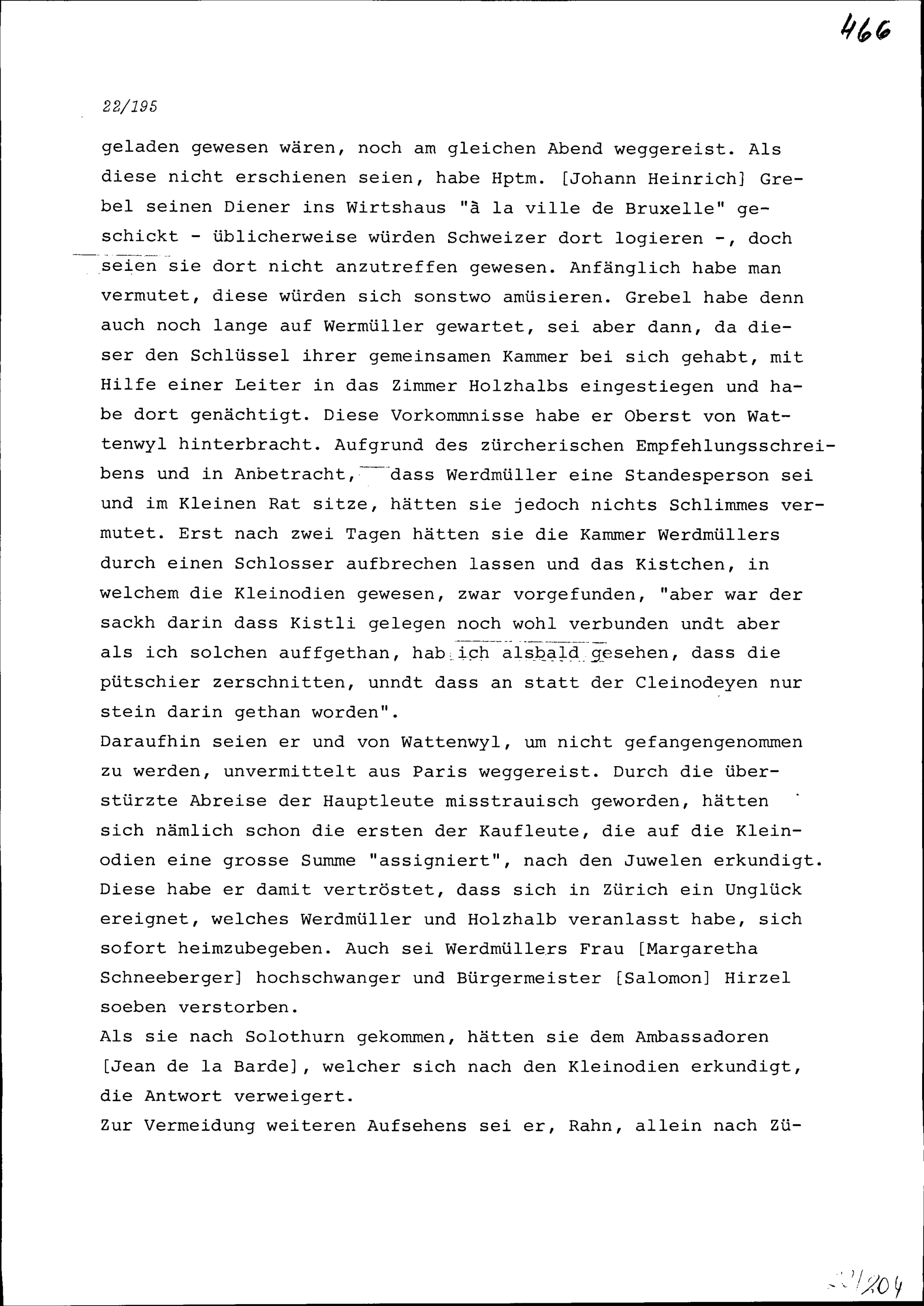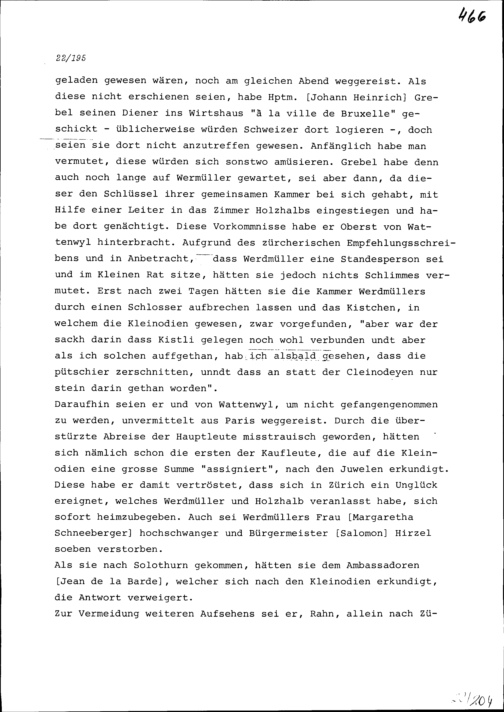 Bericht von Johann Jakob Rahn an Beat II. Zurlauben über die Entwendung der Kleinodien in Paris
