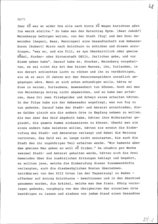 Schreiben von Paul Stocker an Konrad III. Zurlauben, Altammann und Gardehauptmann in französischen Diensten