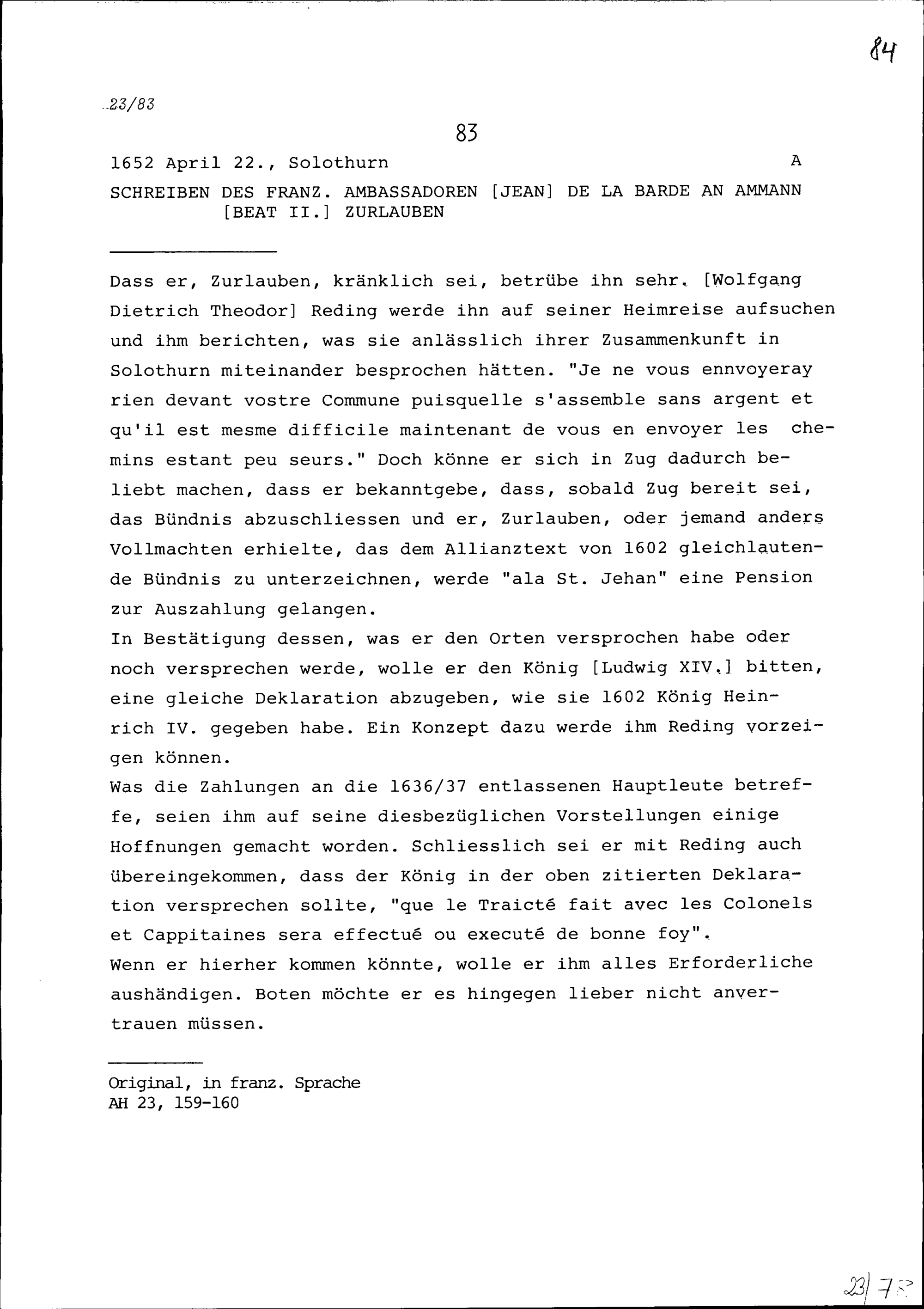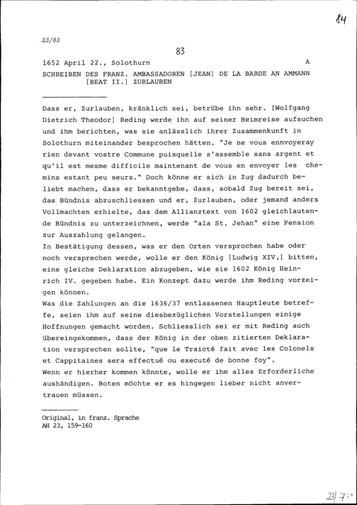 Schreiben von Jean de la Barde, Ambassador von Frankreich, an Beat II. Zurlauben,...