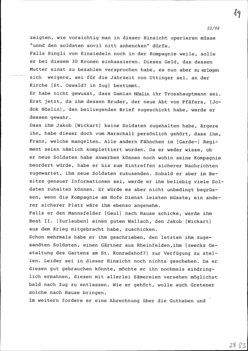 Schreiben von Konrad III. Zurlauben an Franz Zurlauben, Leutnant