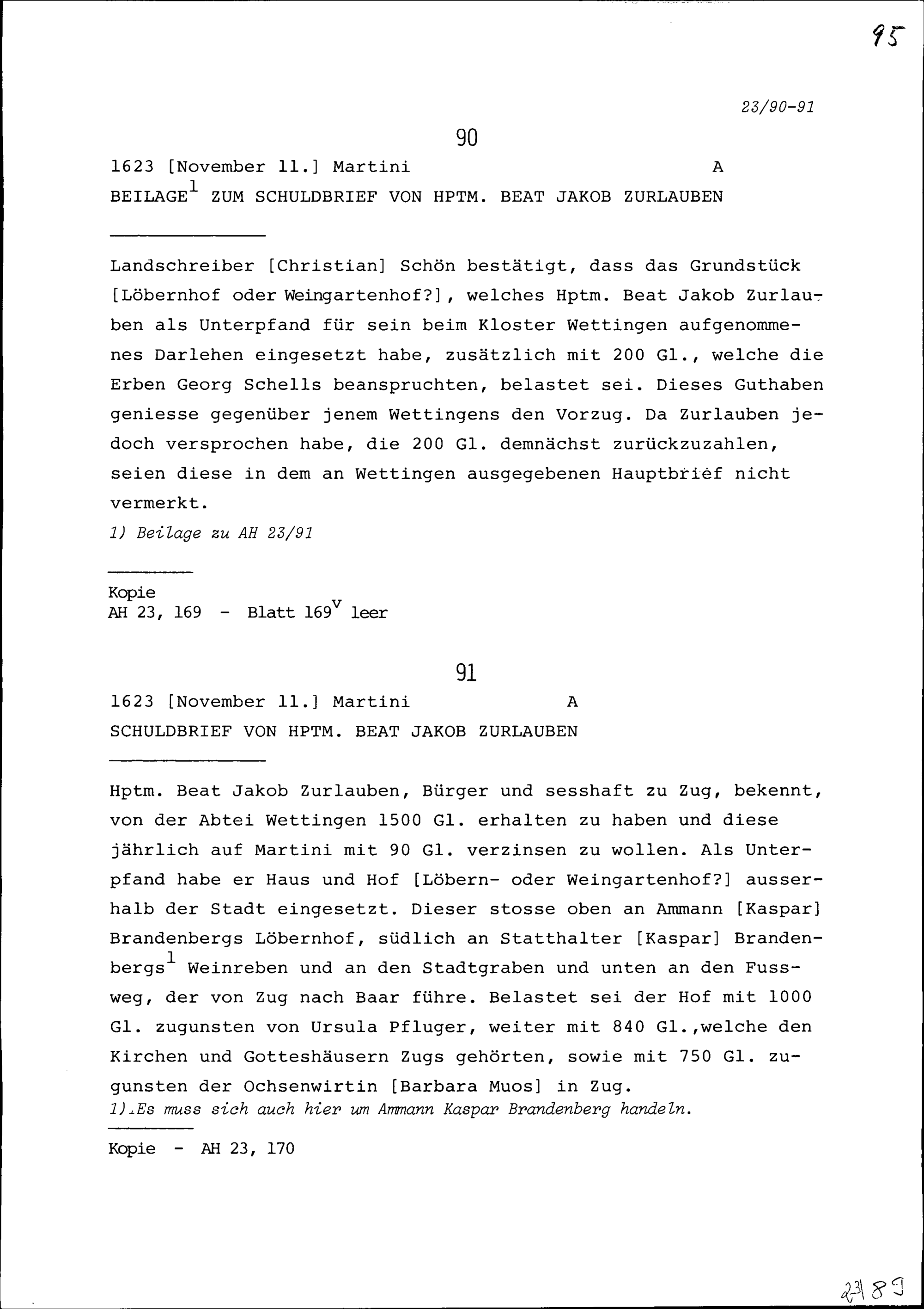 Beilage zum Schuldbrief von Beat Jakob Zurlauben, Hauptmann