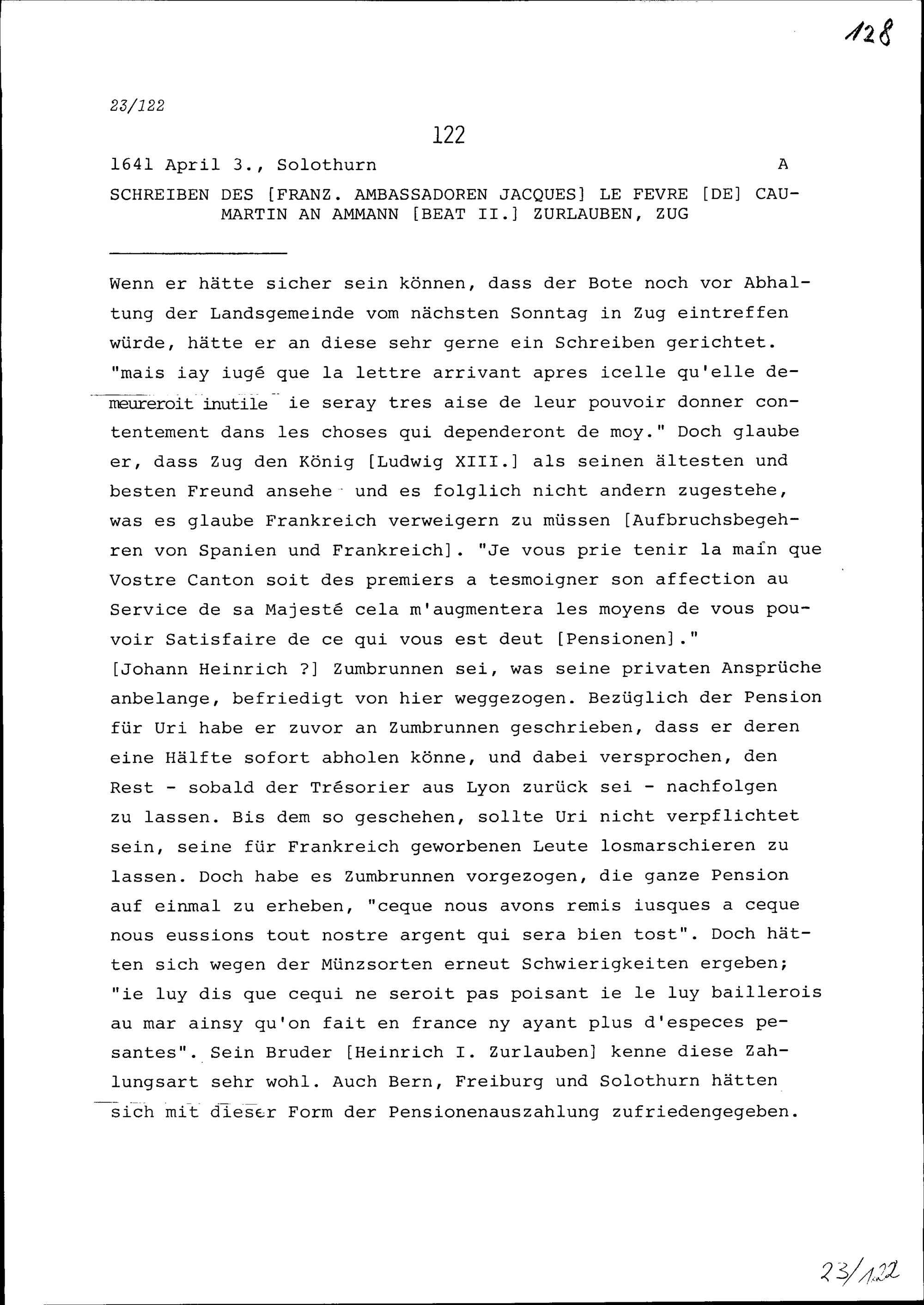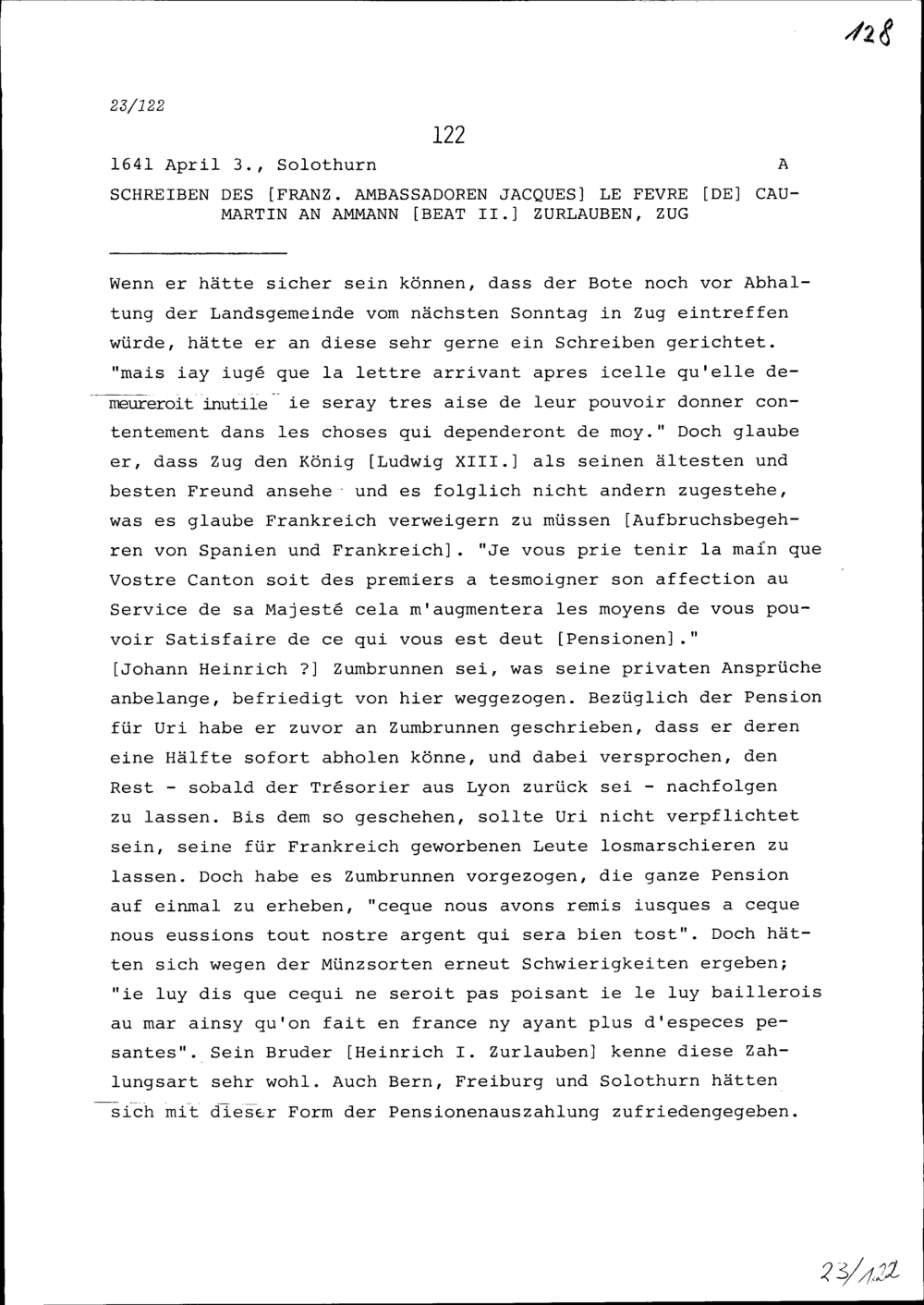 Schreiben von Jacques Le Fèvre de Caumartin, Ambassador von Frankreich, an Beat II....