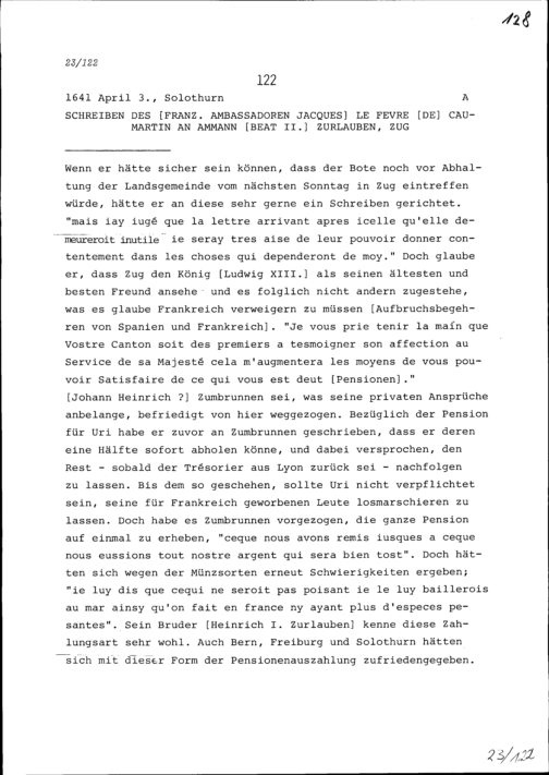 Schreiben von Jacques Le Fèvre de Caumartin, Ambassador von Frankreich, an Beat II. Zurlauben, Ammann, Zug