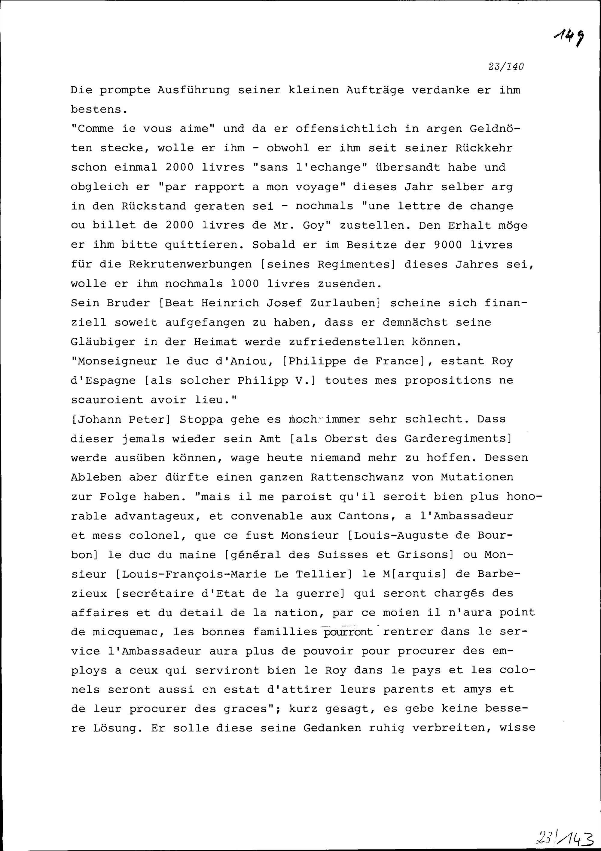 Schreiben von Beat Jakob Zurlauben an Philipp Dienast, Rat, Basel, zuhanden von Beat...