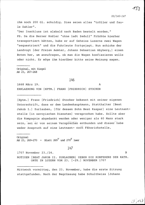 Erklärung von Franz Friedrich Stocker, Hauptmann
