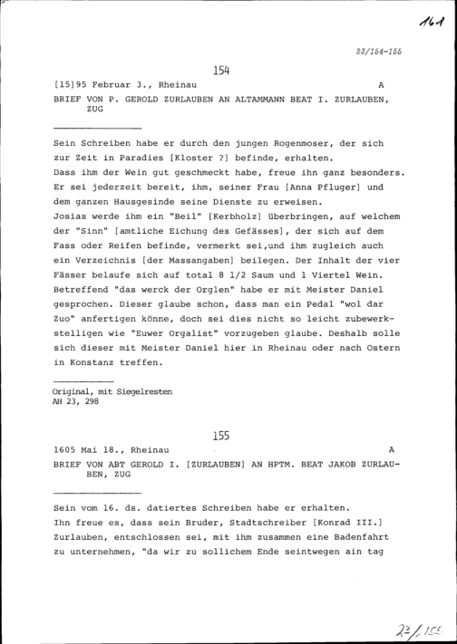 Schreiben von Gerold Zurlauben, Konventuale, an Beat I. Zurlauben, Altammann, Zu...