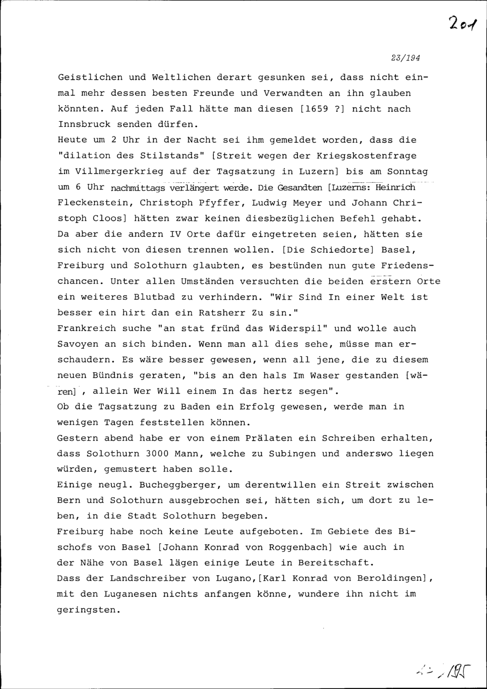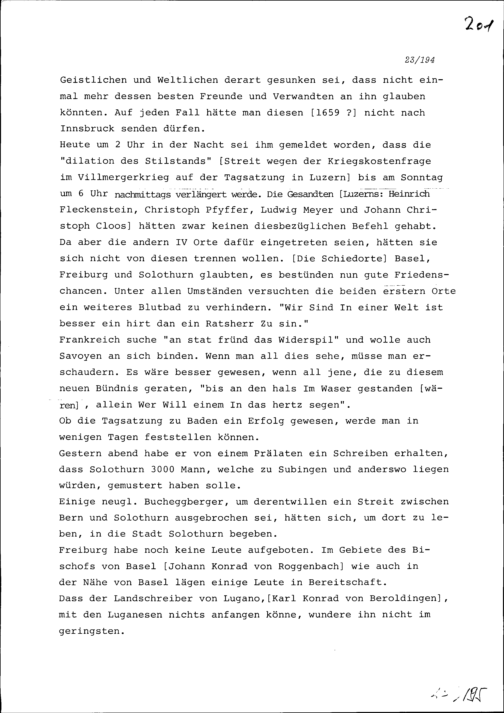 Schreiben von Kaspar Pfyffer an Beat II. Zurlauben, Ammann, Zug
