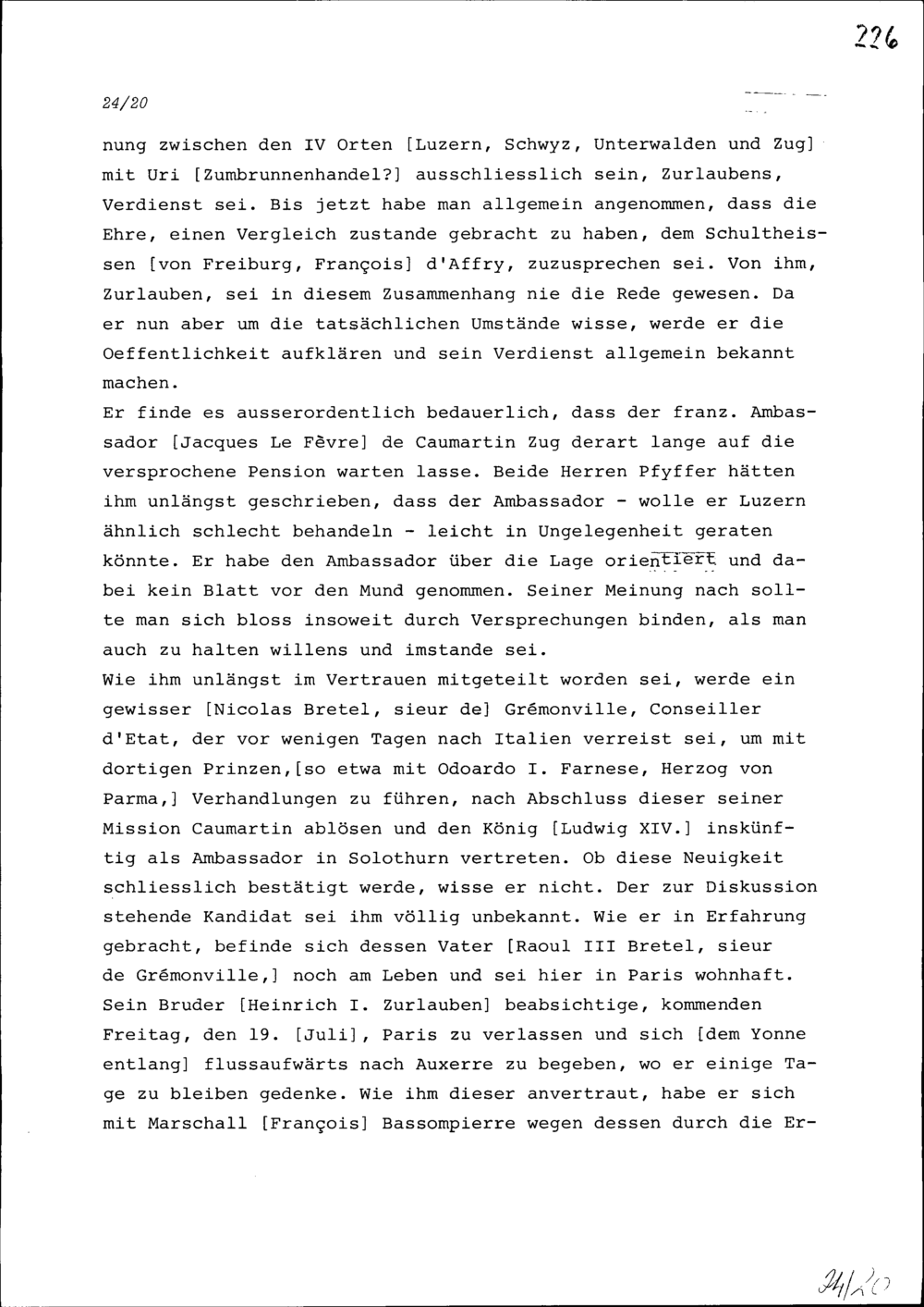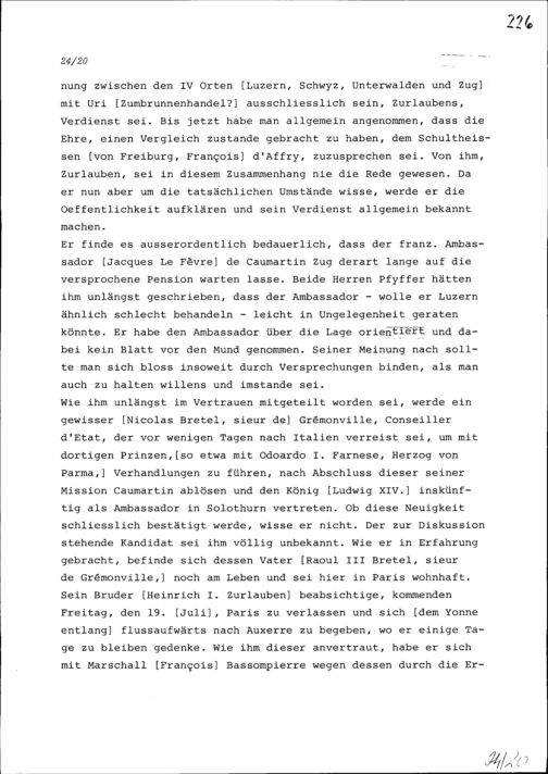 Schreiben von Alfons von Sonnenberg an Beat II. Zurlauben, Ammann, Zug
