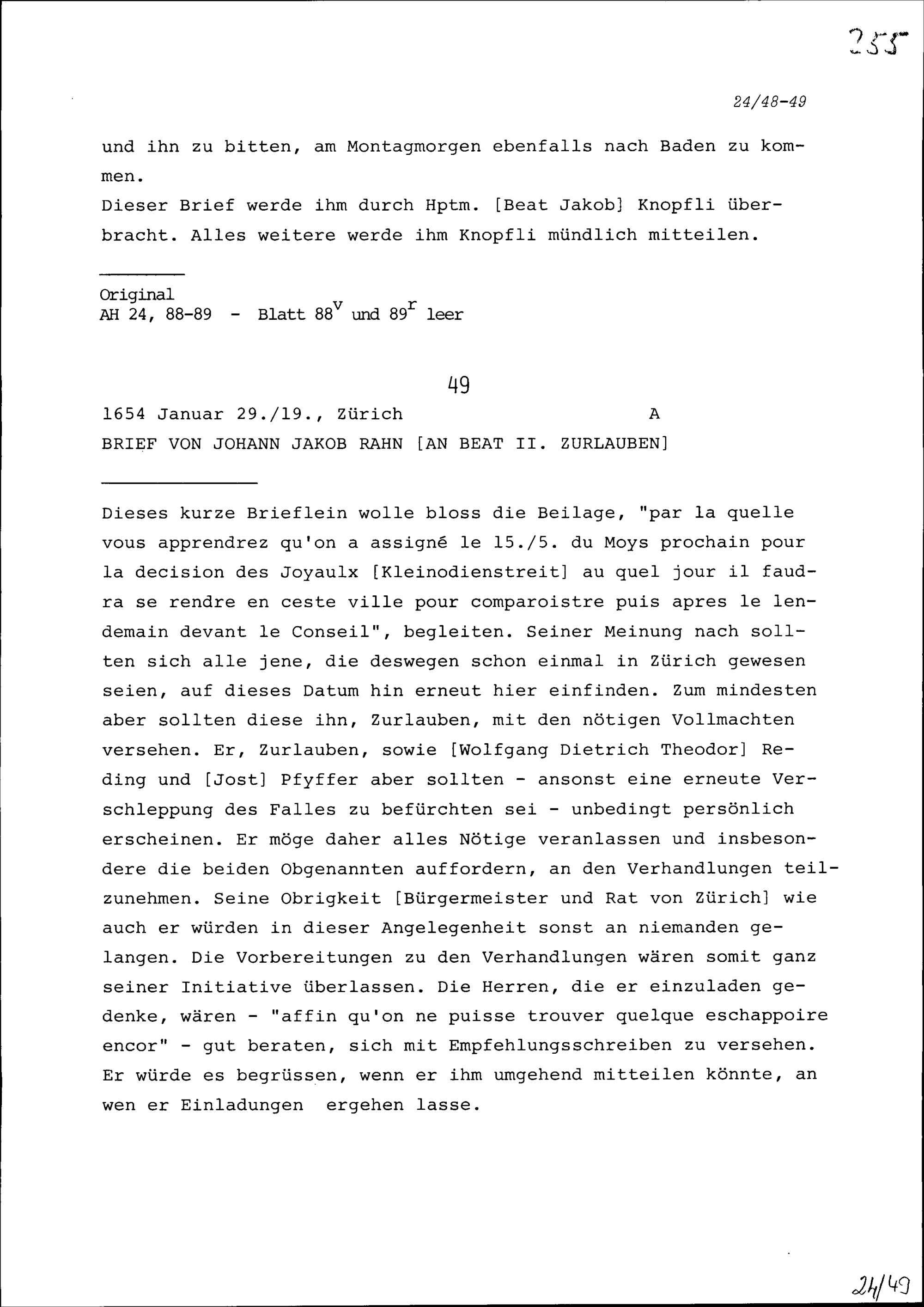 Schreiben von Johann Jakob Rahn an Beat II. Zurlauben