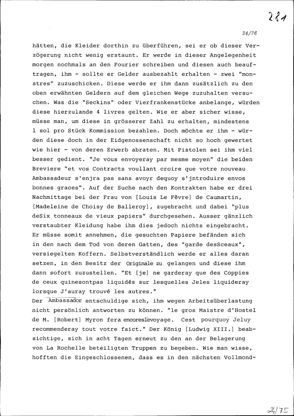 Schreiben von Barthélémy Rolland an Konrad III. Zurlauben, Ammann und Gardehauptmann, Zug