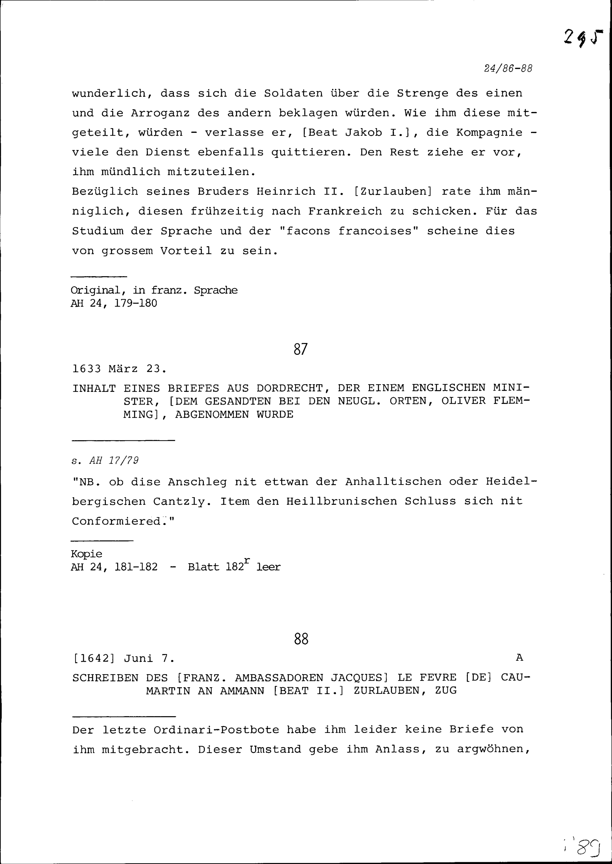 Inhalt eines Briefs aus Dordrecht, der Oliver Flemming, englischer Minister und Gesandter bei den Neugläubigen Orten, abgenommen wurde