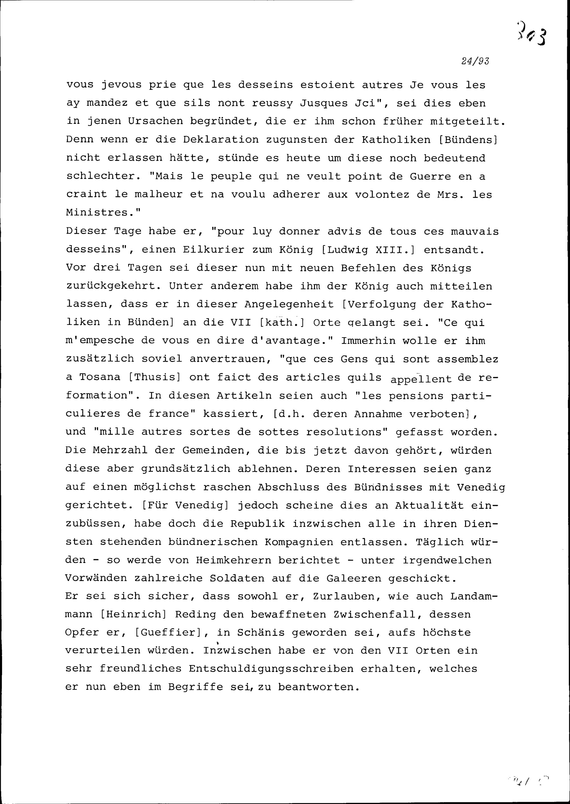 Schreiben von Etienne Gueffier, Ambassador von Frankreich in Bünden, an Konrad III....