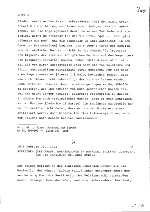 Schreiben von Etienne Gueffier, Ambassador von Frankreich in Bünden, an die Gemeinden...
