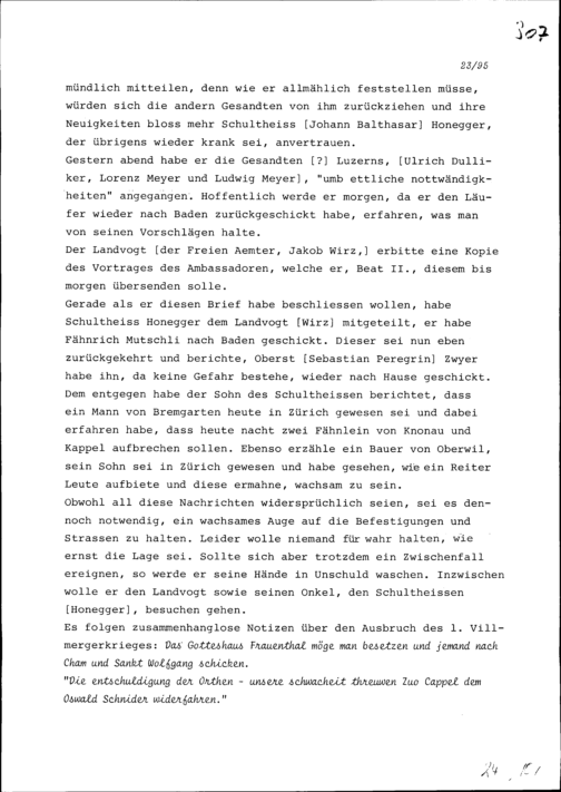 Schreiben von Beat Jakob I. Zurlauben an Beat II. Zurlauben, Ammann, Zug