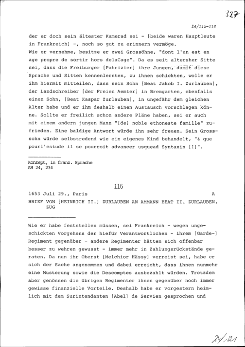 Schreiben von Heinrich II. Zurlauben an Beat II. Zurlauben, Ammann, Zug