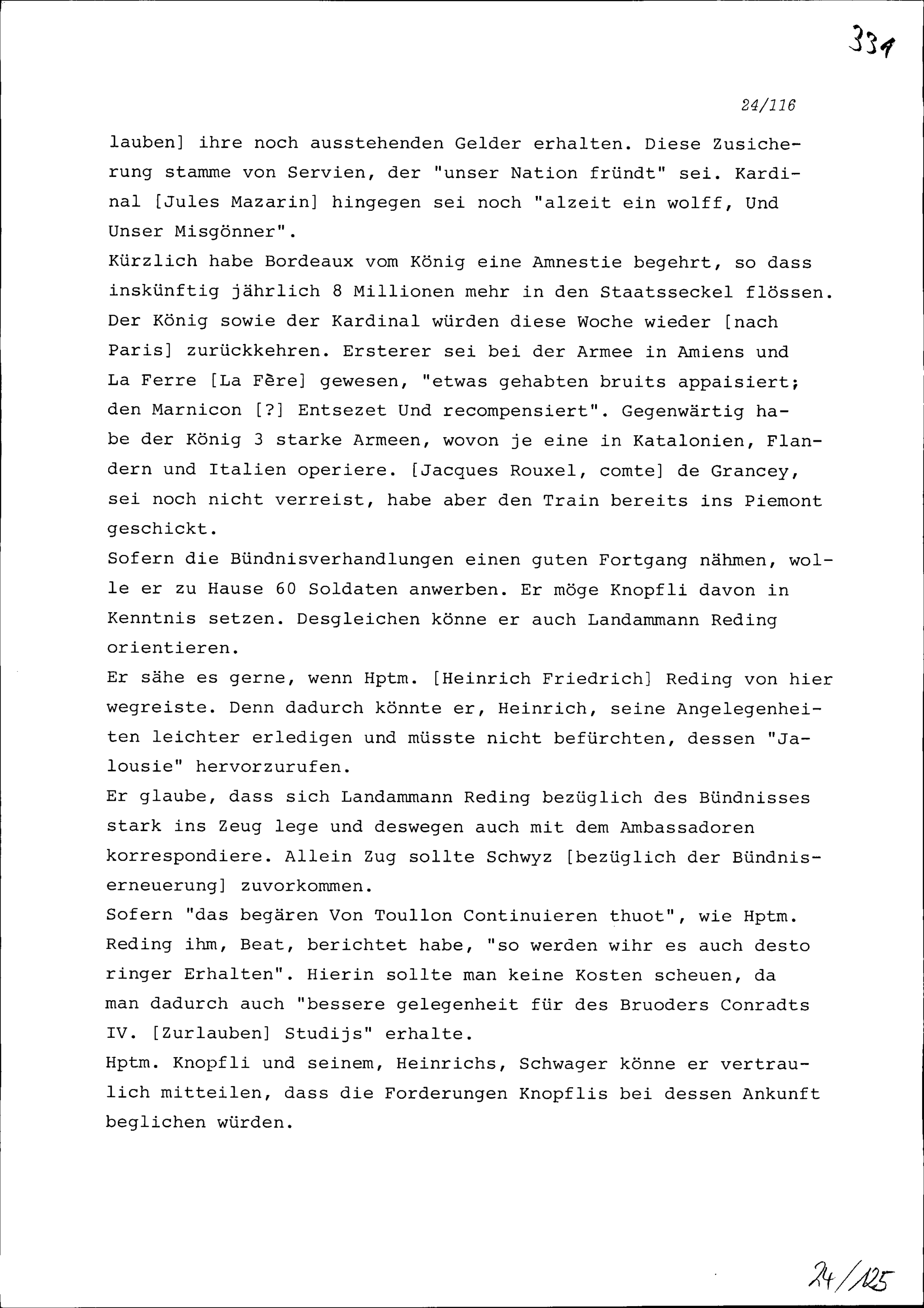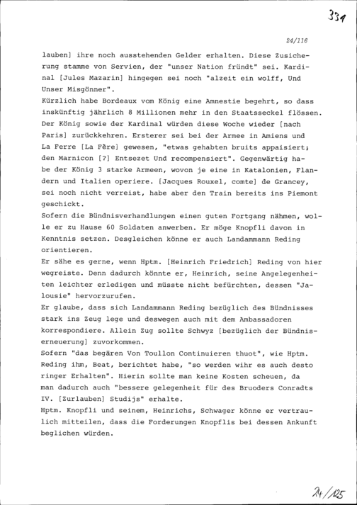 Schreiben von Heinrich II. Zurlauben an Beat II. Zurlauben, Ammann, Zug