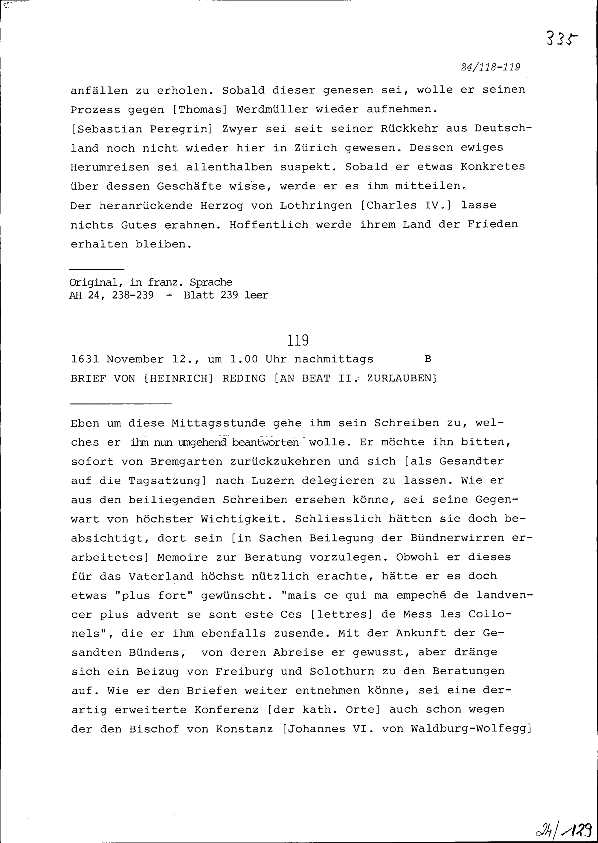 Schreiben von Heinrich Reding an Beat II. Zurlauben